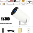 2025 HY300 Portable Projector 4K Ultra HD 300ANSI Android 11 BT54 Electronic Focus Built in Speaker Home Theater