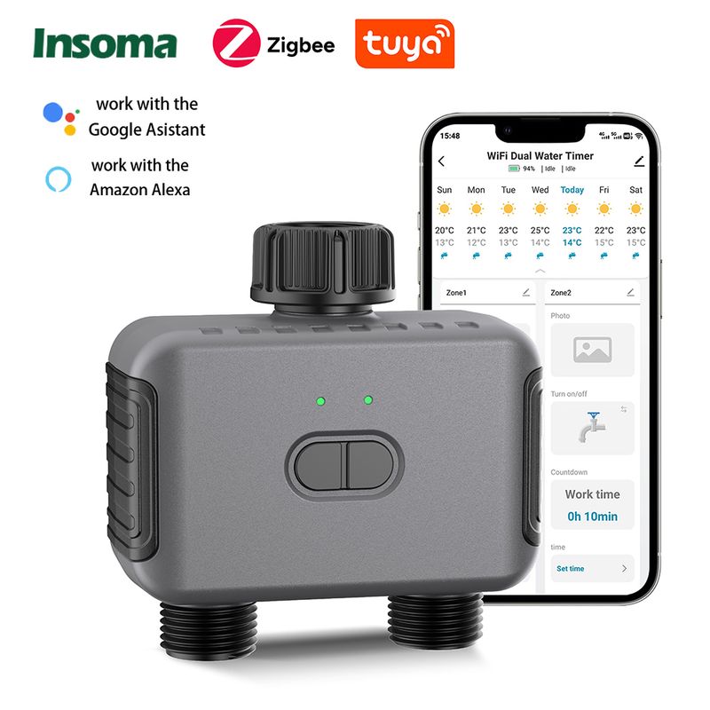 2025 Insoma Zigbee Automatic Smart Water Timer 1/2 Ways Garden Drip Irrigation Watering System Sprinkler Programmer Tools IPX5