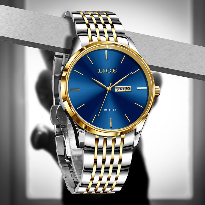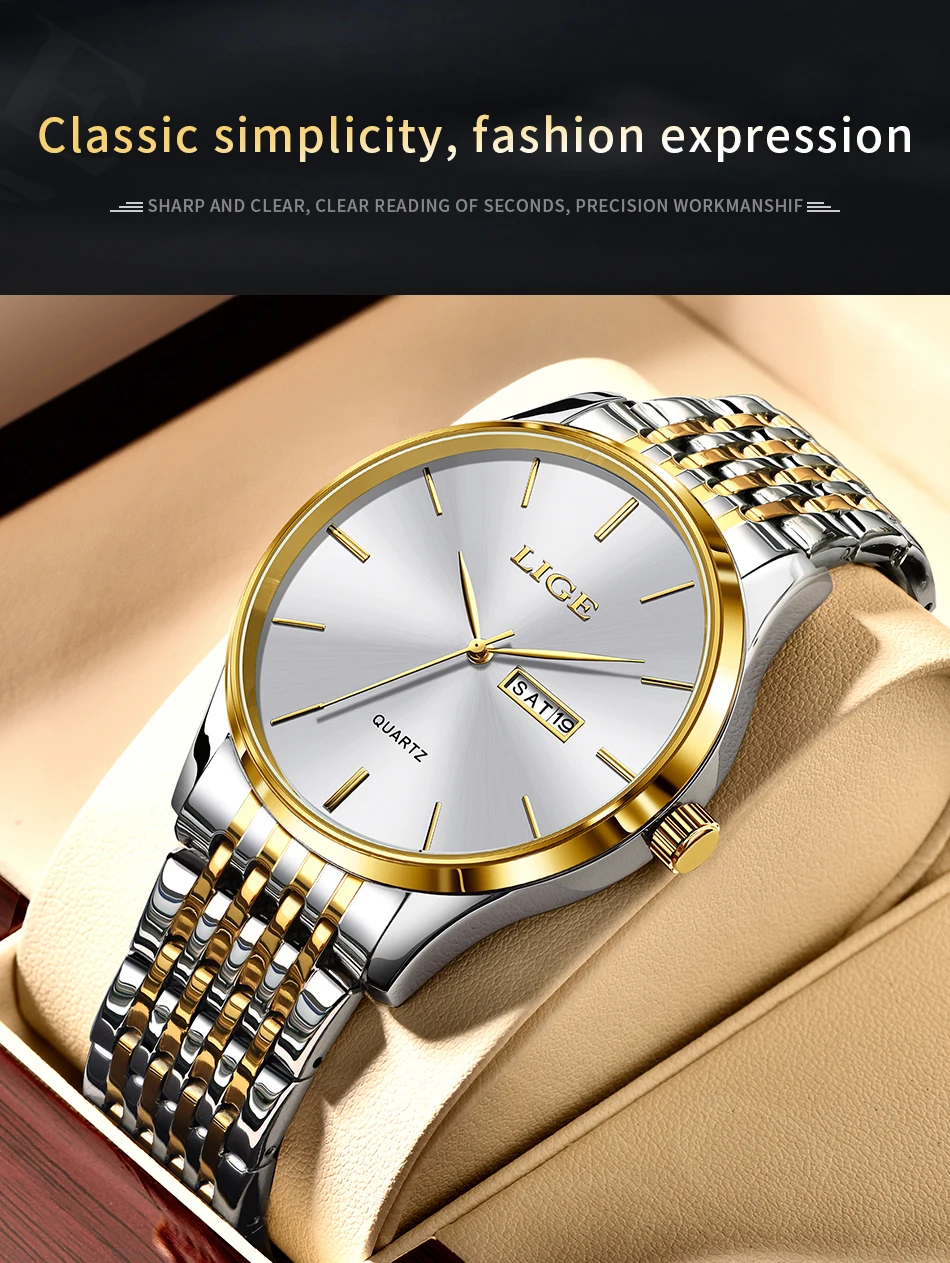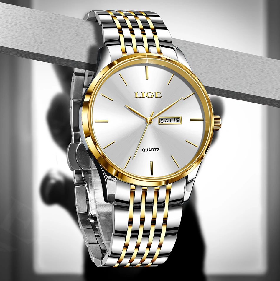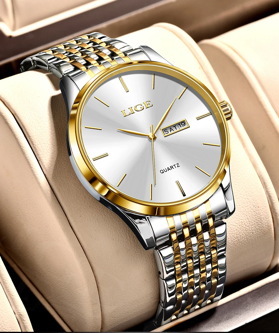 2025 LIGE Men Business Watches Top Brand Luxury Man Wristwatch Waterproof Luminous Date Week Quartz Men's Watch High Quality+Box