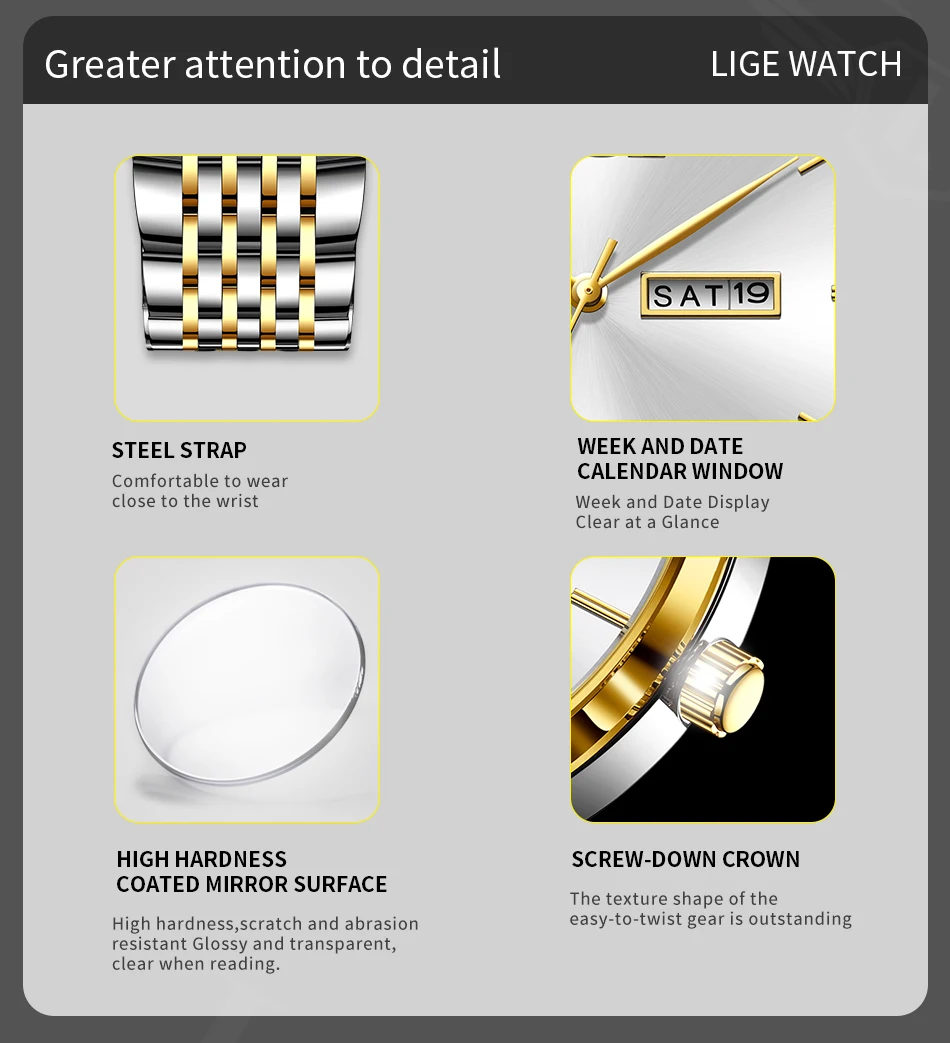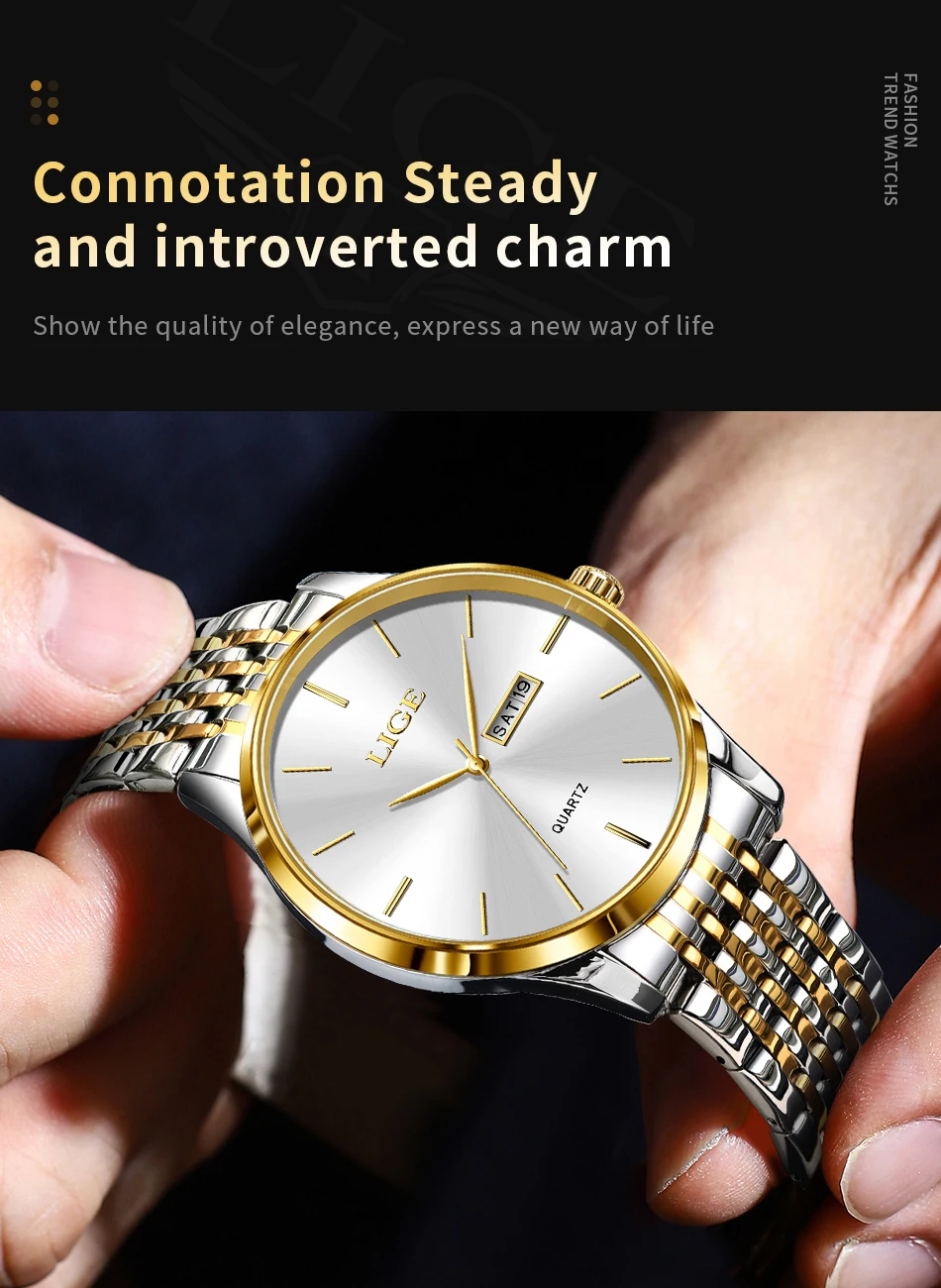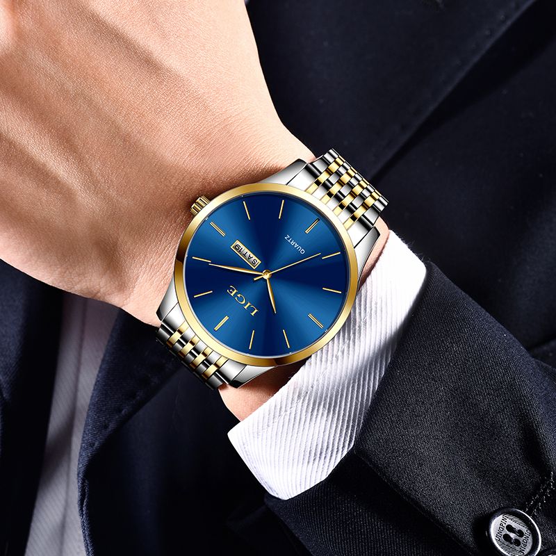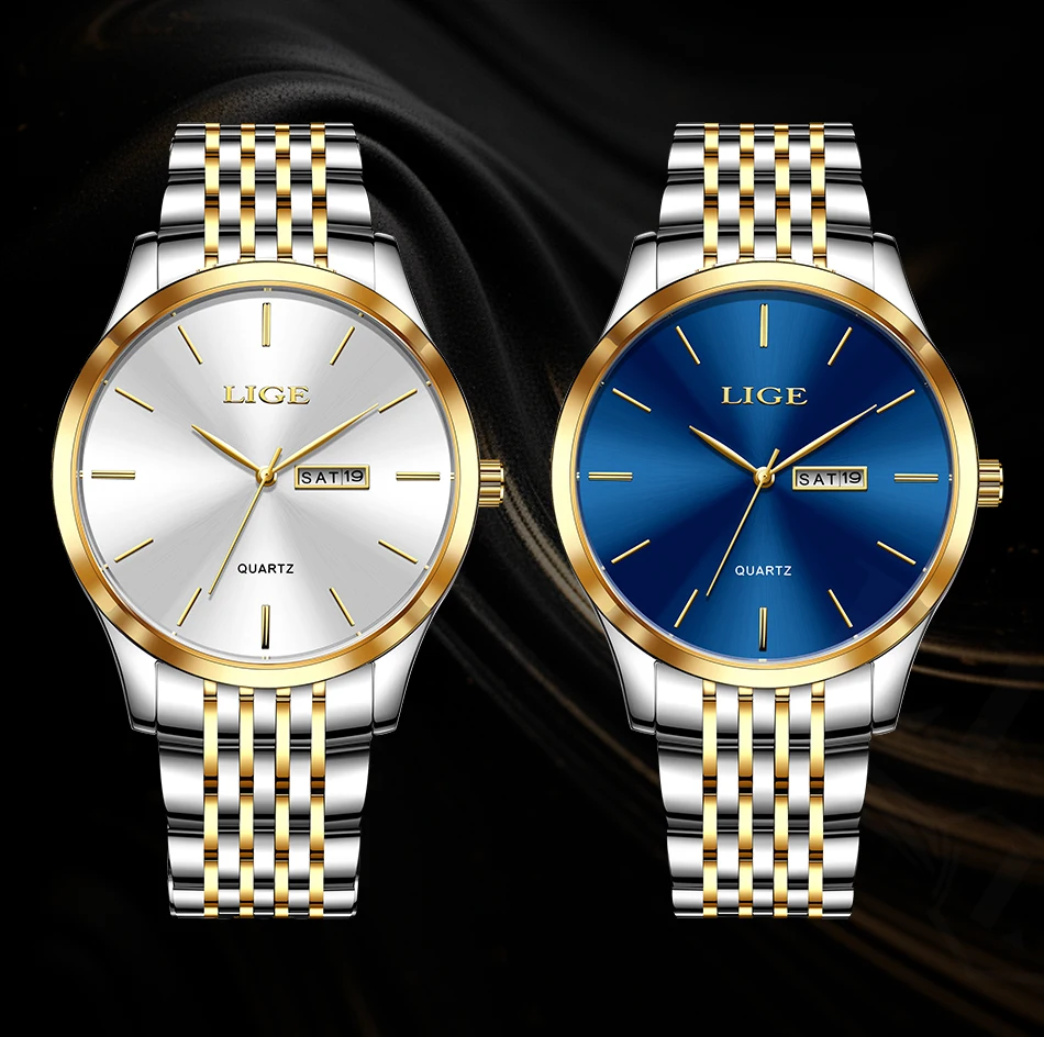 2025 LIGE Men Business Watches Top Brand Luxury Man Wristwatch Waterproof Luminous Date Week Quartz Men's Watch High Quality+Box