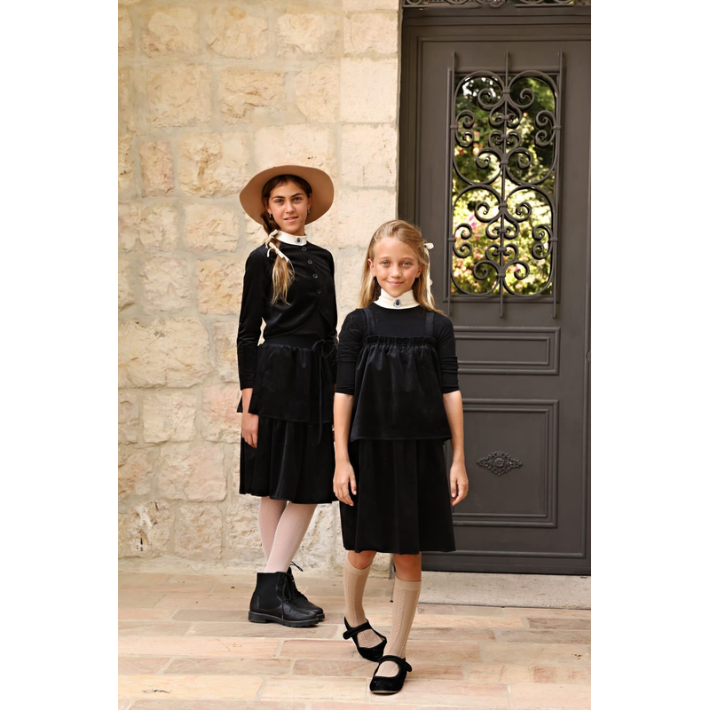 2025 Mail's AW High End Outfits Brother Sister Family Matching Clothes Black Velvet Dresses Blazers Skirtsmail