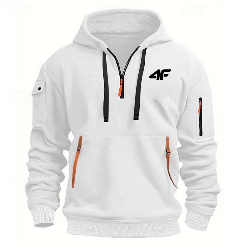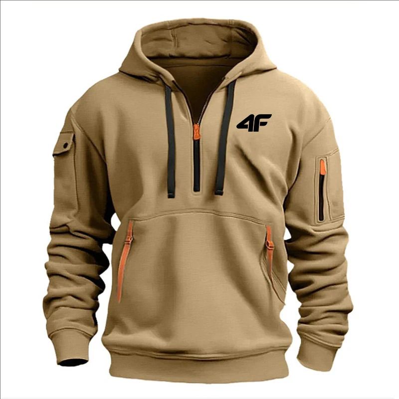 2025 Men's hooded sweater casual sports jumper vintage Harajuku long sleeve zipper multi-pocket casual loose coat Street