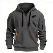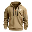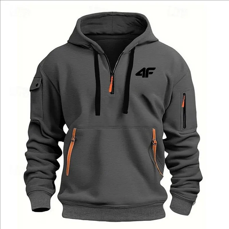 2025 Men's hooded sweater casual sports jumper vintage Harajuku long sleeve zipper multi-pocket casual loose coat Street