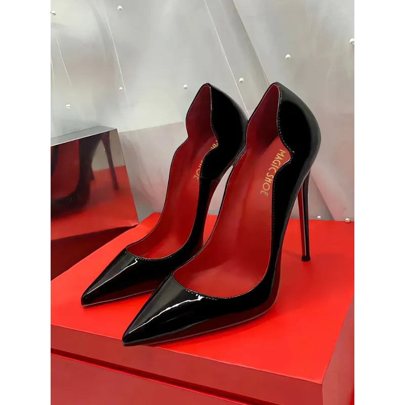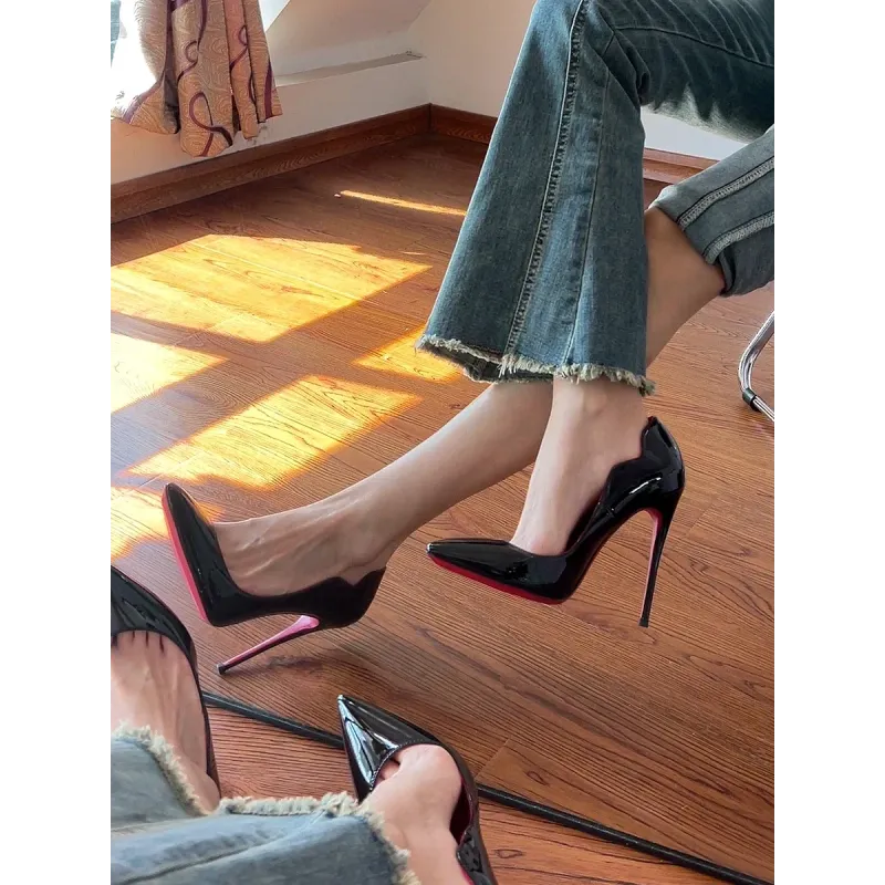 2025 New 12cm Black Extra Thin Heels High Heels Super Shallow Mouth Women's Large Professional Single Shoes34-46