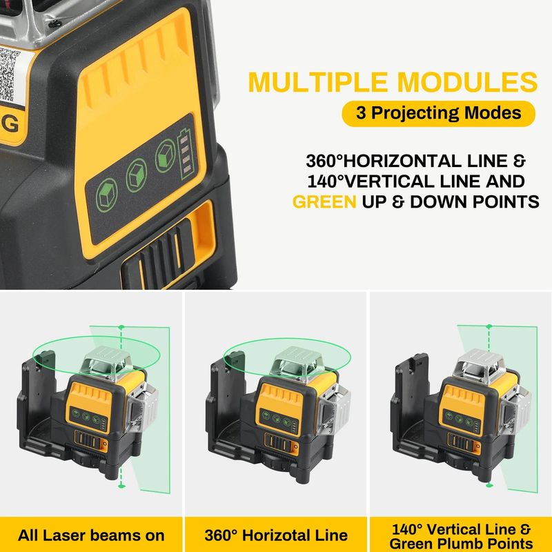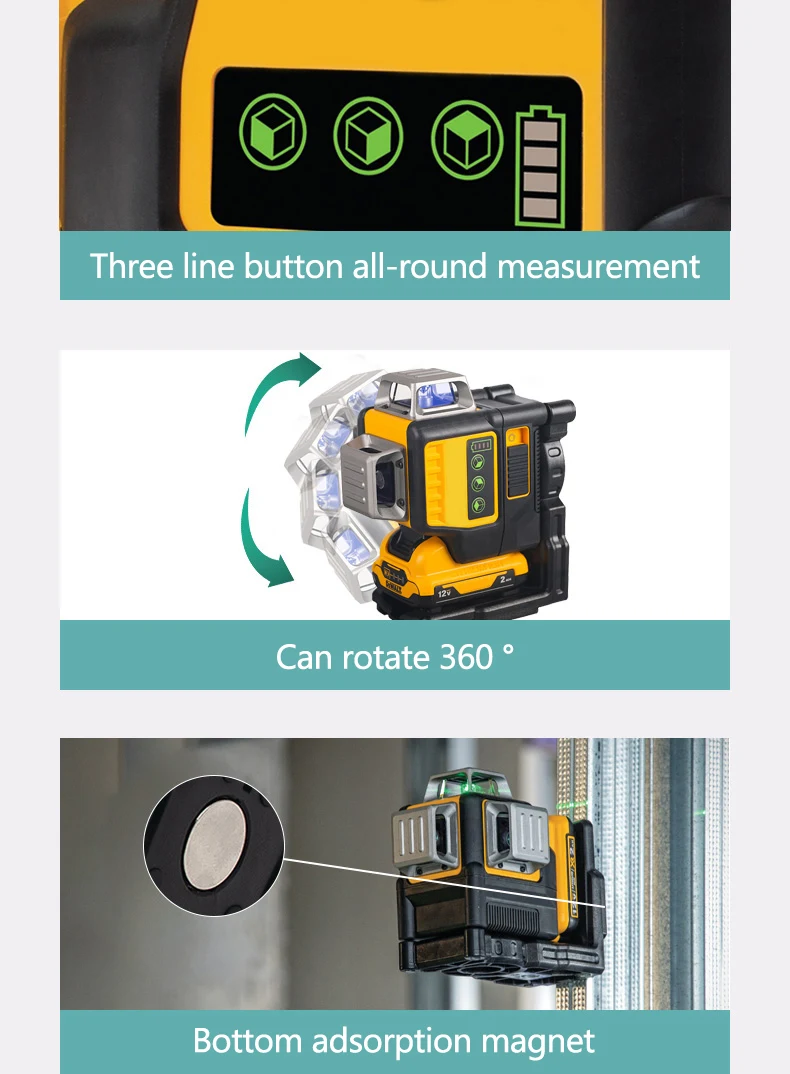 2025 new 12V lithium battery laser marking instrument 3-sided 360 ° 12 line green laser level vertical self level