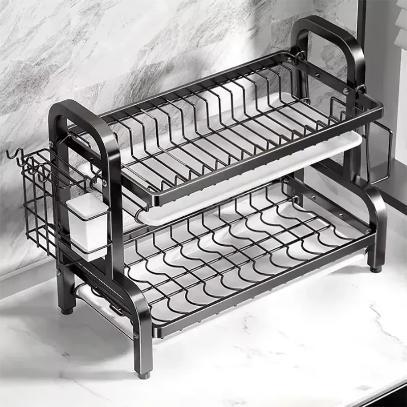 2025 New 2-Tier Stainless Steel Kitchen Countertop Dish Drainer with Utensil Holder Compact Rustproof Storage Organizer