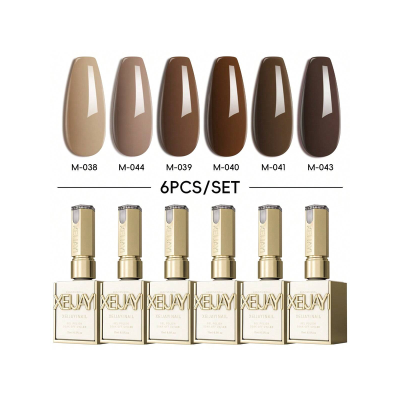2025 New 6-Color Brown Nail Gel Set - Brightening UV/LED Gel Polish Kit for Nail Salons