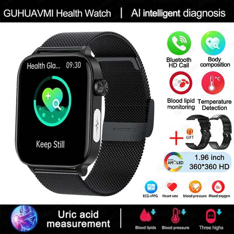 2025 New AI Diagnosis Blood Lipids Uric Acid Body composition Test Smart Watch For Men ECG+PPG Bluetooth Call Health Smartwatch