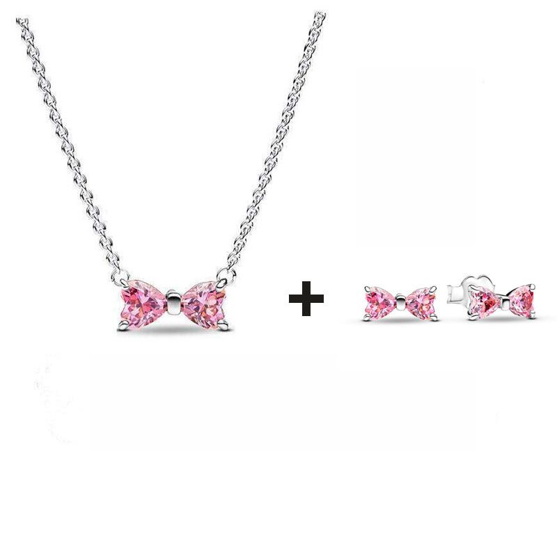 2025 New Birthday Day Gift S925 Silver Earrings Heart &Infinity Knot Jewellery Set Pink Bow Earrings Original Women Jewelry