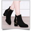 2025 New British Style Winter Boots Women - Round Toe Tassel Furry Lined Mid Heel Ankle Boots Diamond Decor Zip Side
