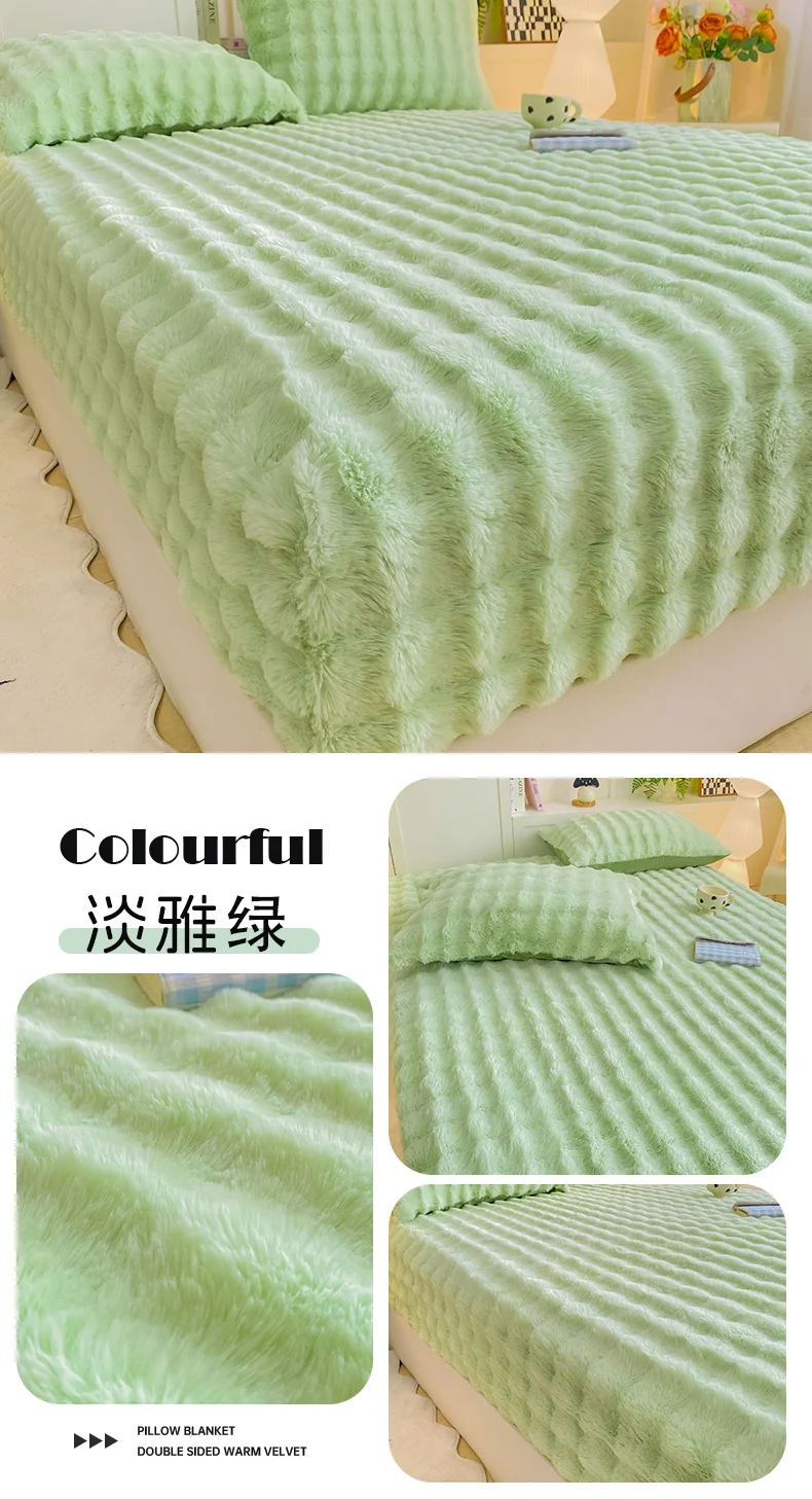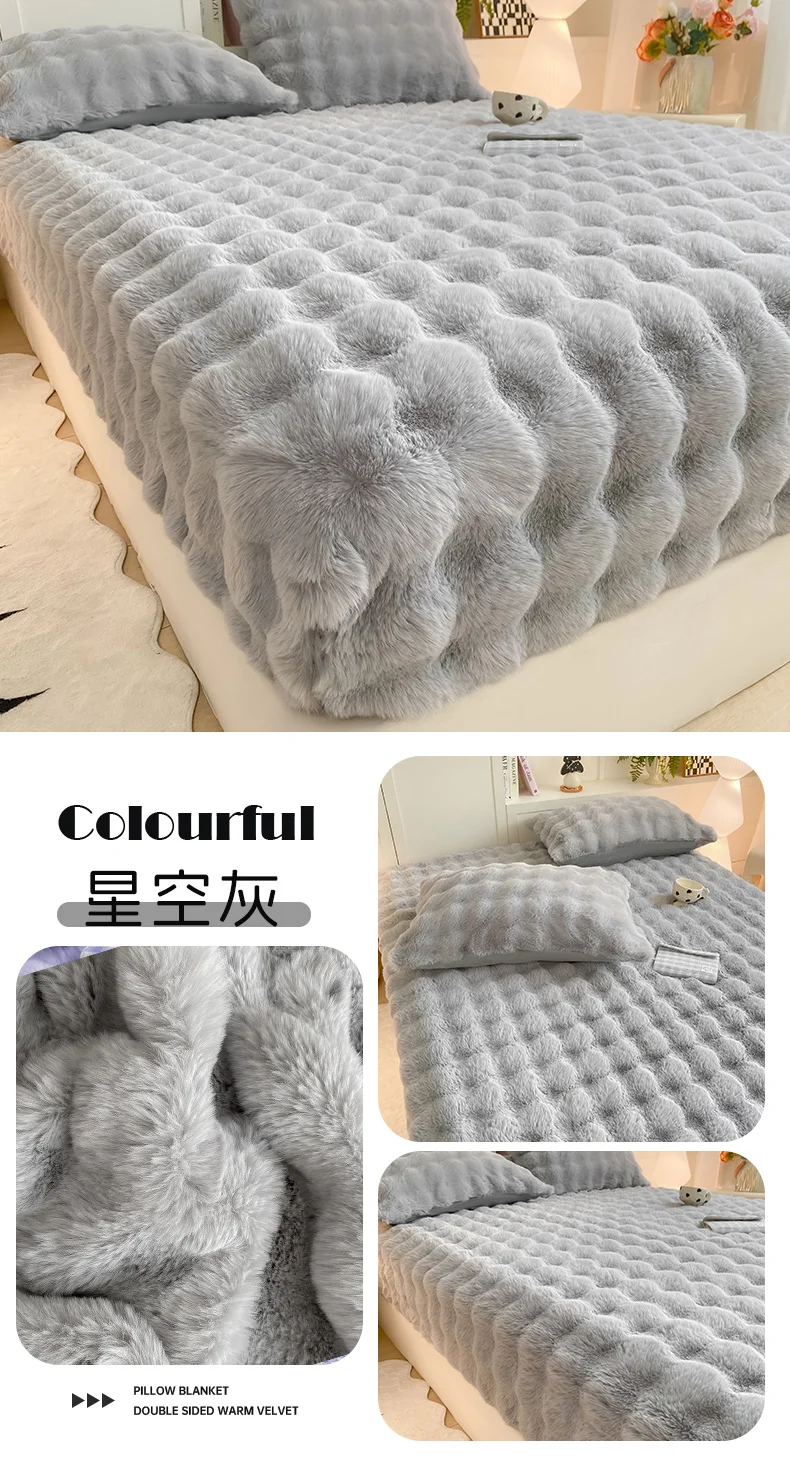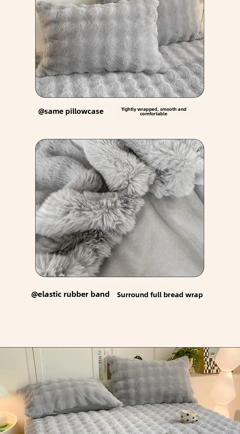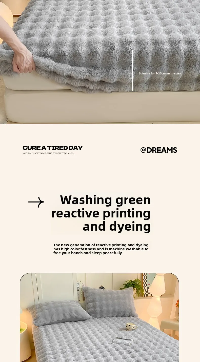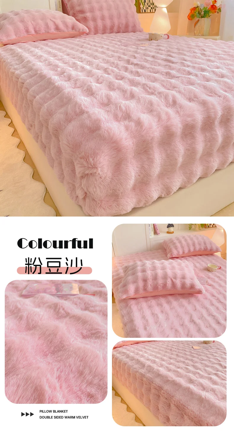 2025 New Bubble Milk Fleece Solid Color Single Bed Hat 360-degree Wrapped Mattress Cover with Elastic Strap Warm Bedspread