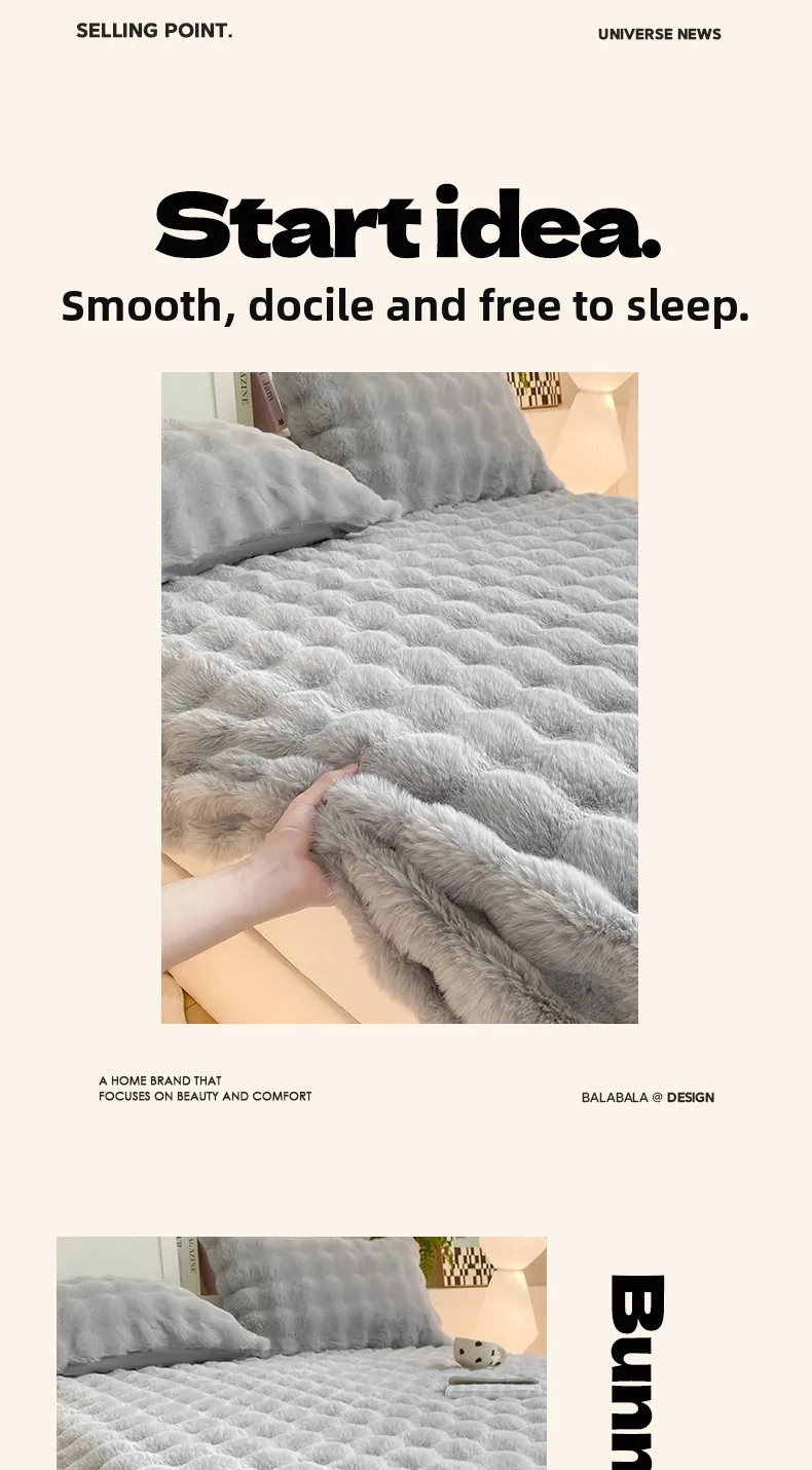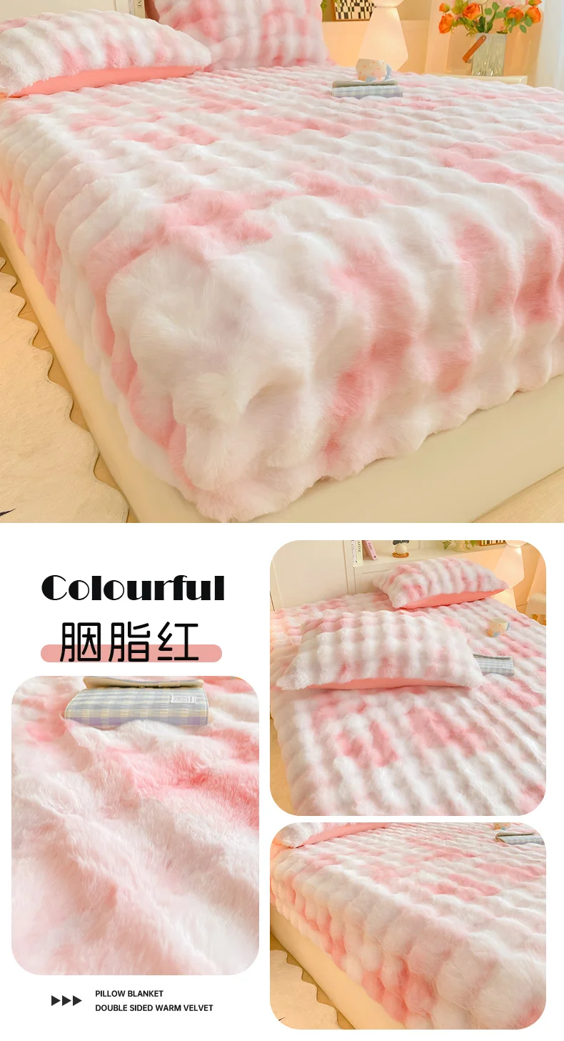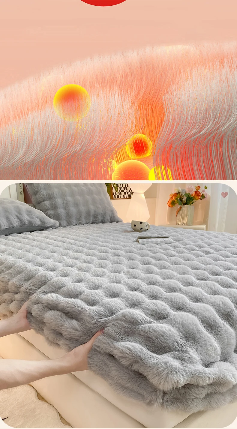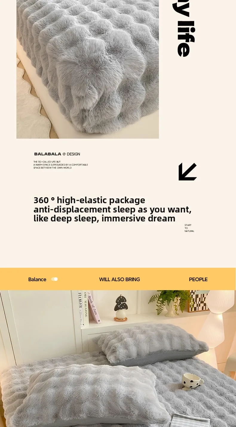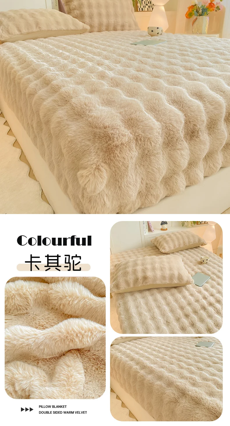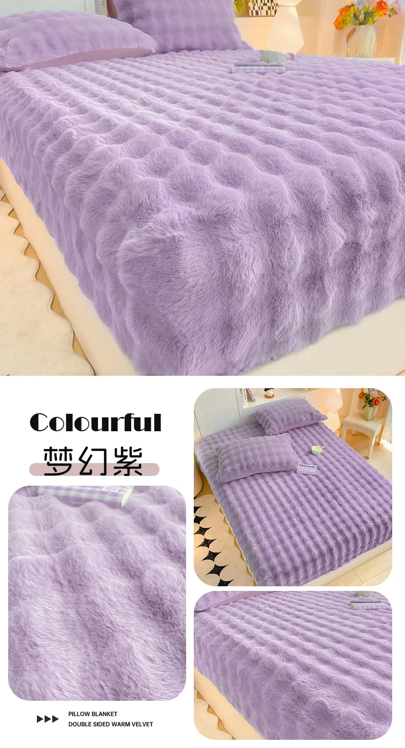 2025 New Bubble Milk Fleece Solid Color Single Bed Hat 360-degree Wrapped Mattress Cover with Elastic Strap Warm Bedspread