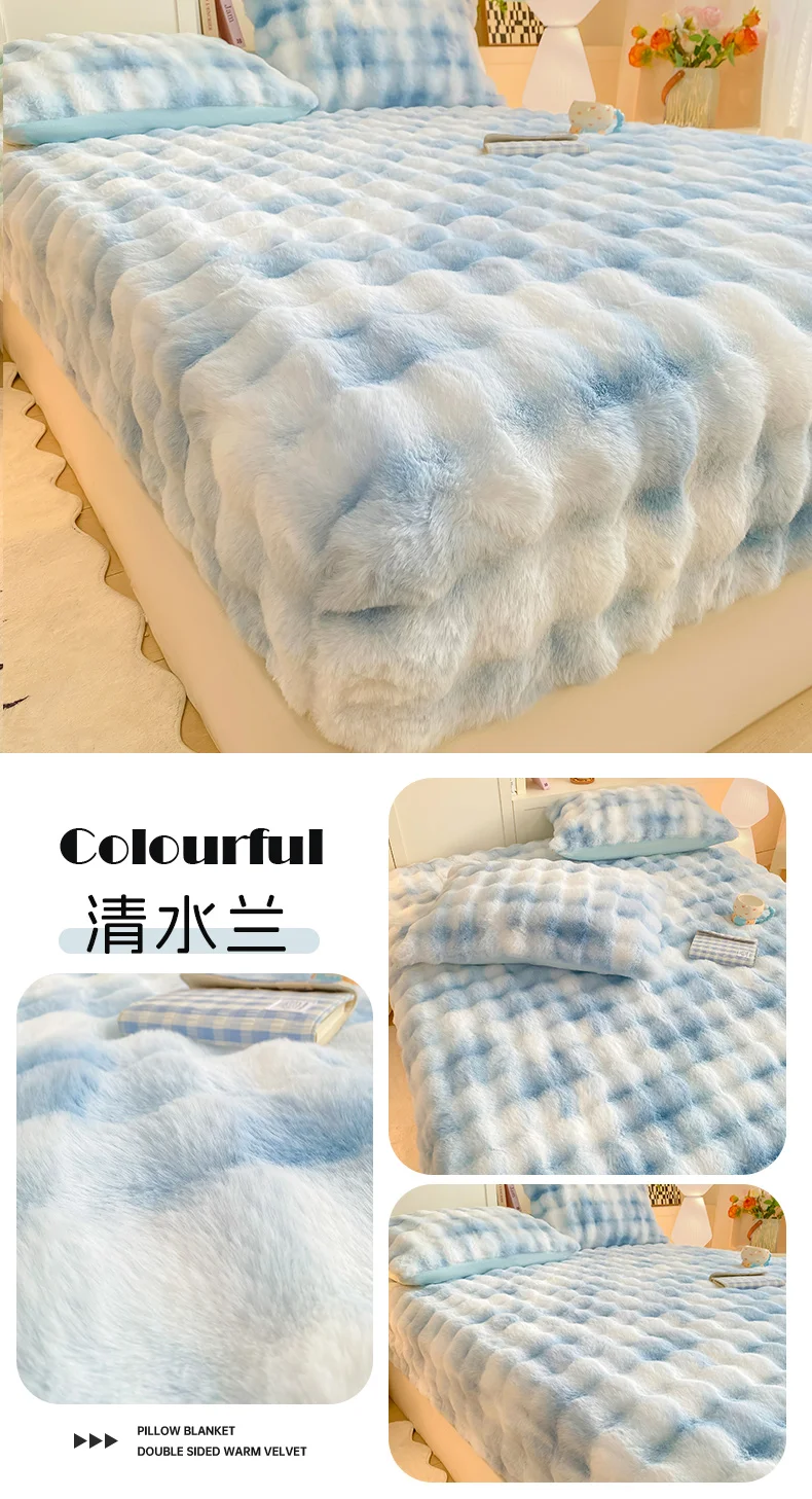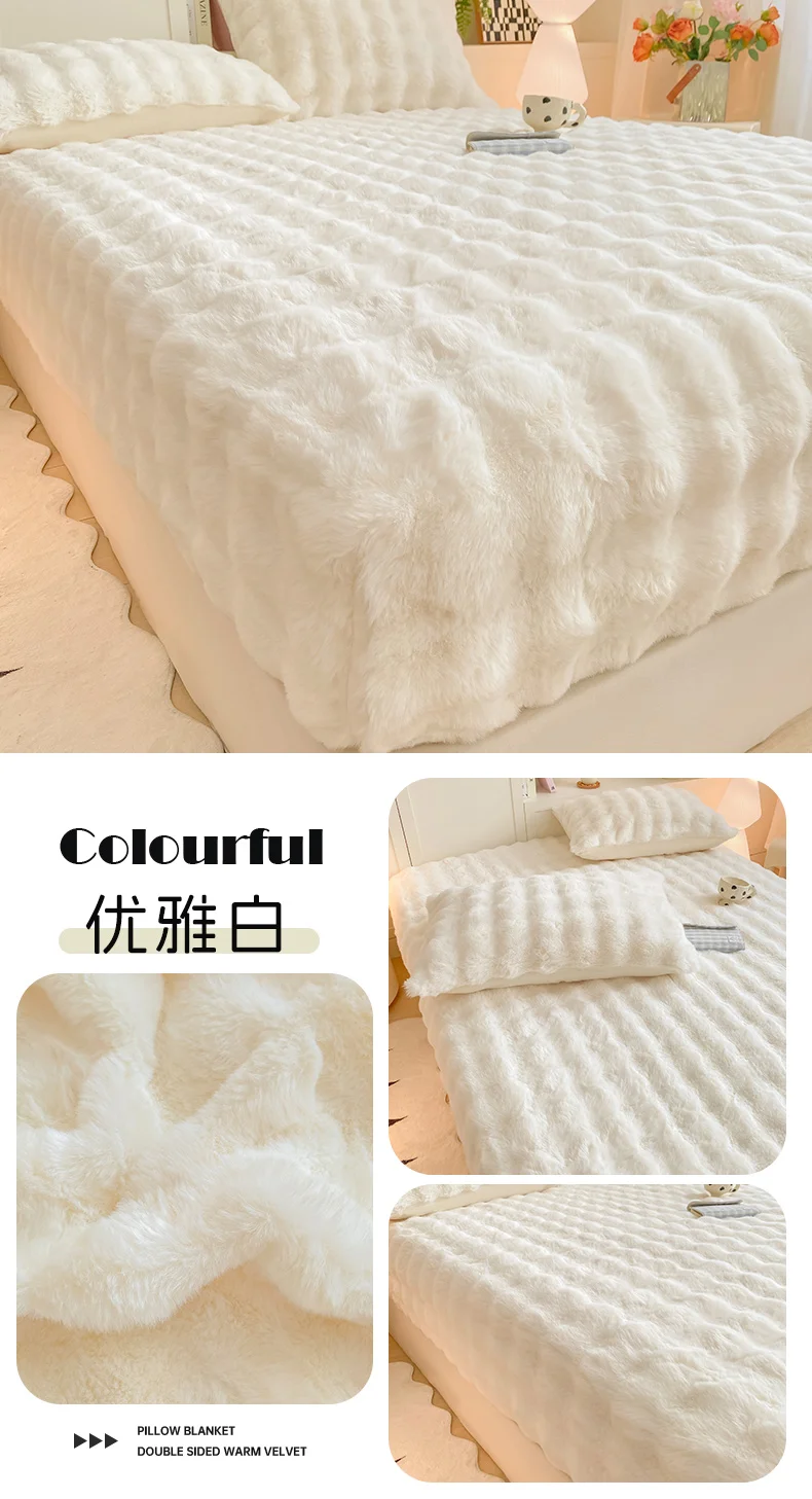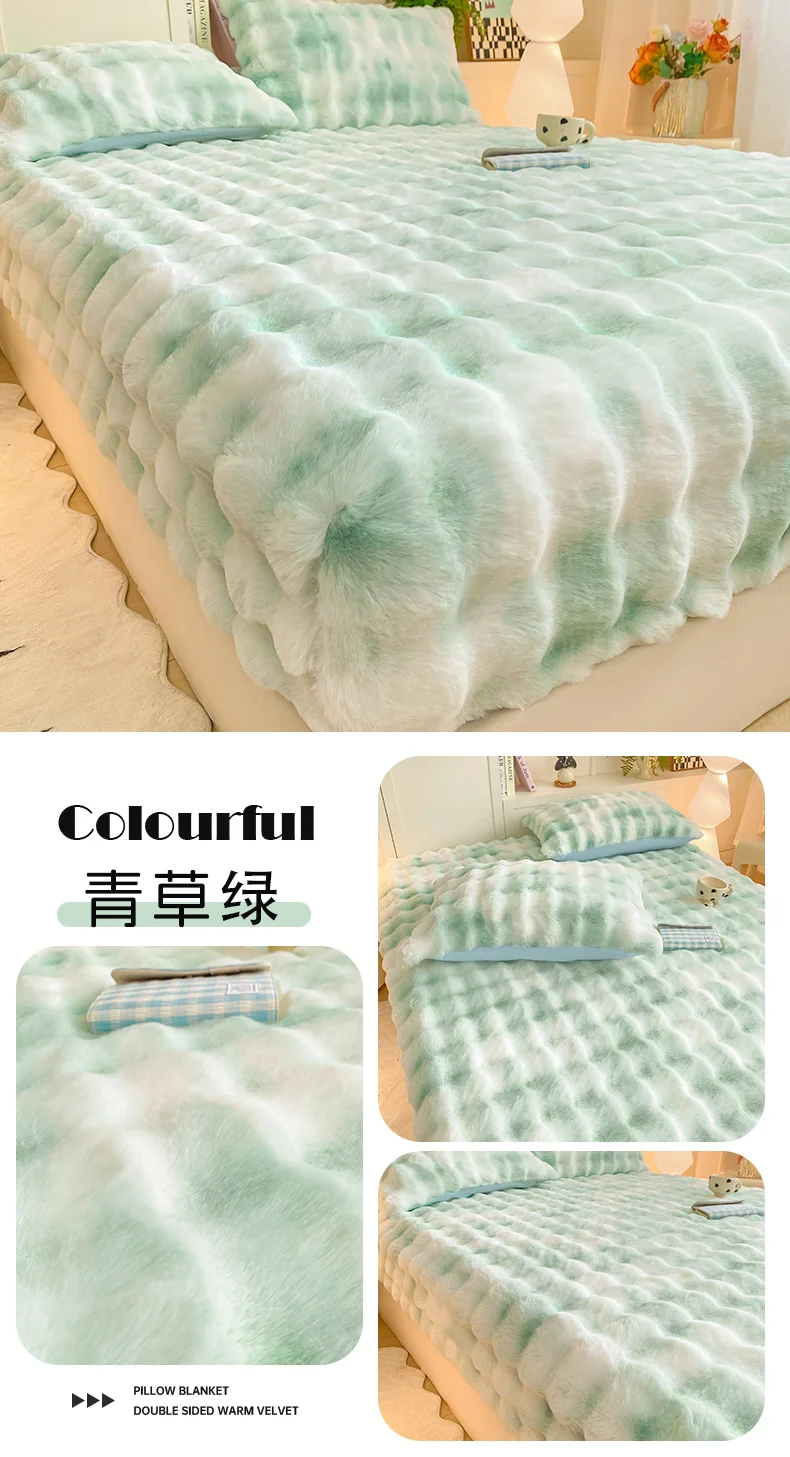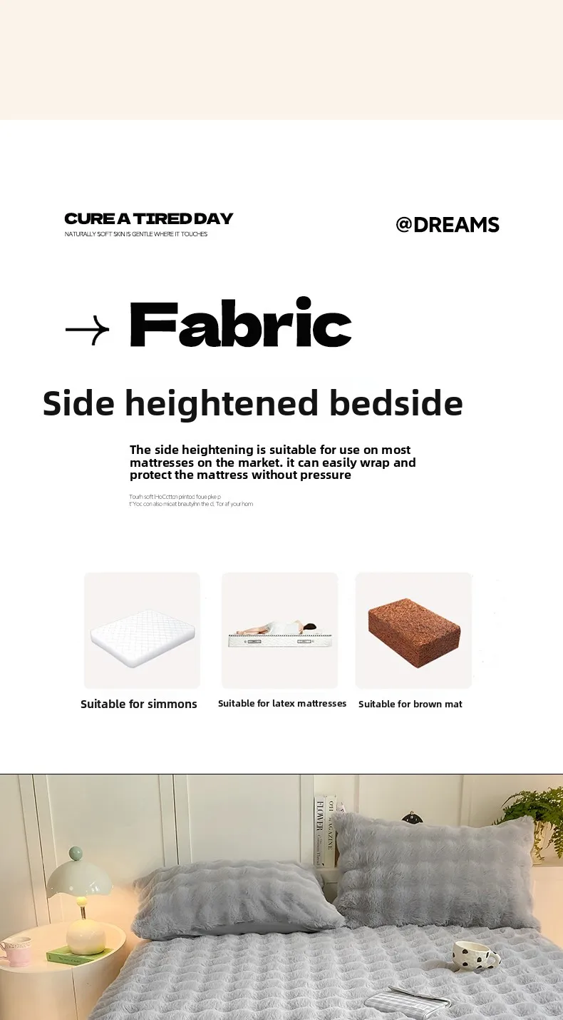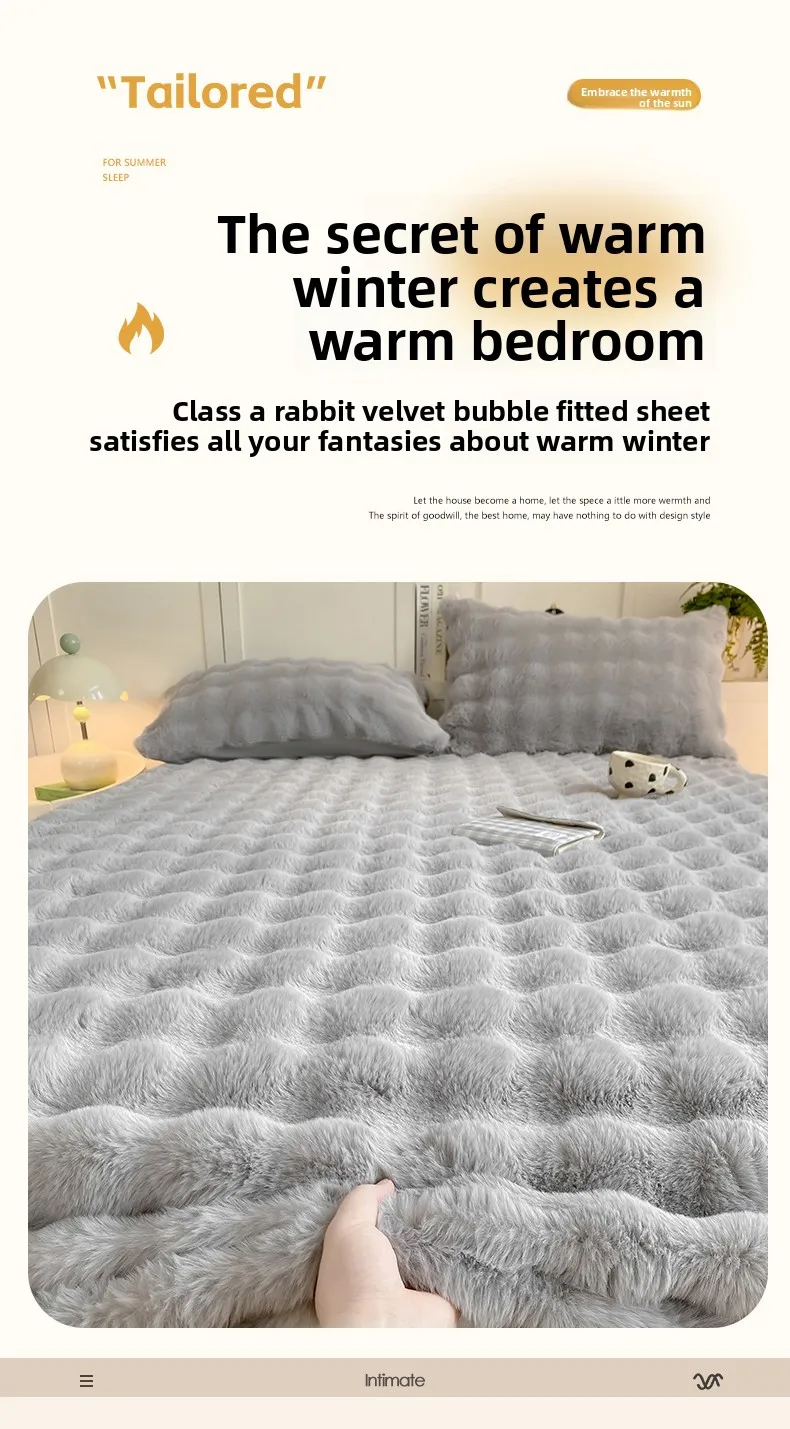 2025 New Bubble Milk Fleece Solid Color Single Bed Hat 360-degree Wrapped Mattress Cover with Elastic Strap Warm Bedspread