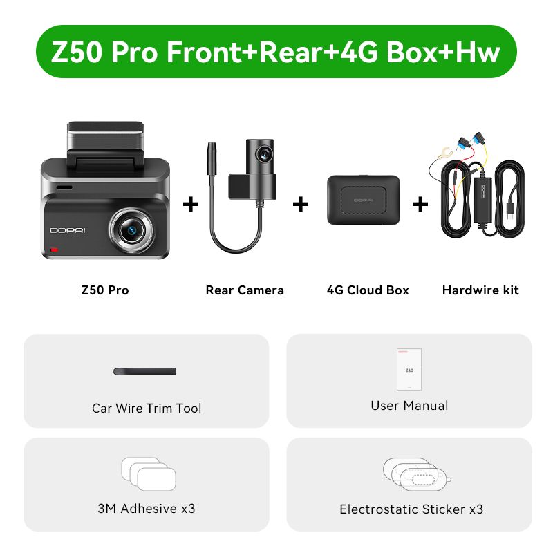 5. Z50 Pro Dual 4G n Hw:2-Channel recording,Front +Rear+Hardwire kit+4G Box (Remote Monitoring and Real-time Control need to purchase 4G Cloud Set)