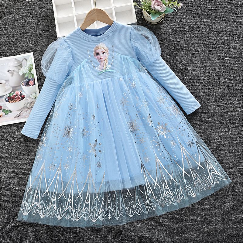 2025 New Elsa Princess Dress Baby Girls Dress Spring Autumn Kids Dress Party Long-sleeved Children Frozen Formal Dress 2-8Y