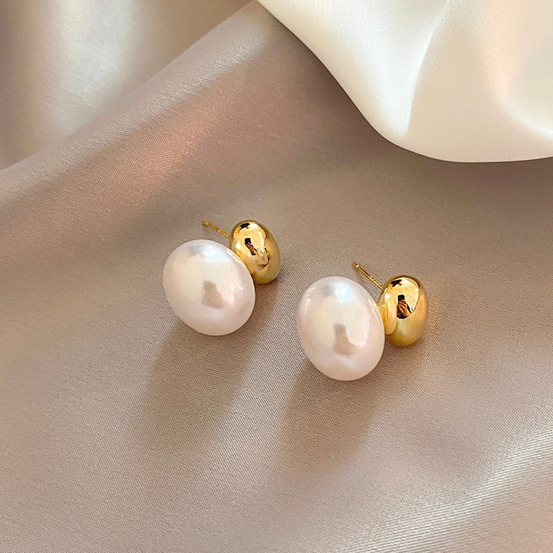 2025 New French Elegant Gold Color Bean Spliced Flat Pearl Earrings for Korean Fashion Jewelry Party Women's Sweet Accessories
