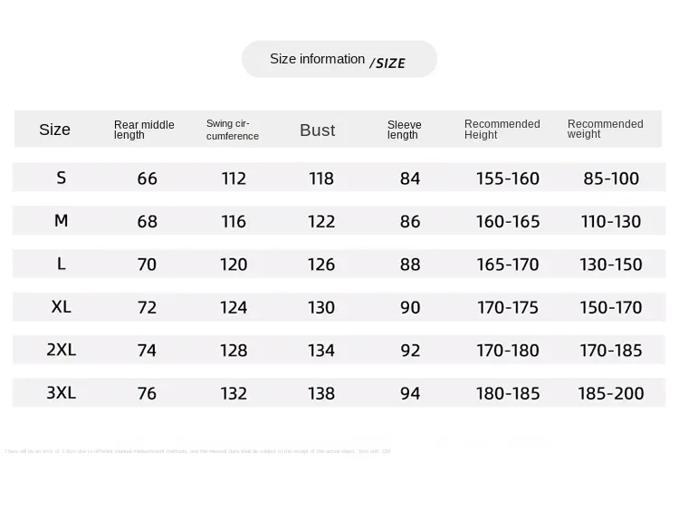 3. The size chart above refers to clothingdimensions, NOT your body measurements.