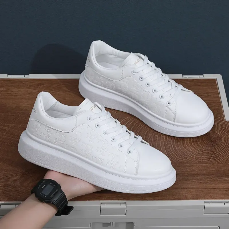 2025 New Men's Shoes Spring and Autumn Flat-soled Casual Leather Shoes Sports Shoes Black and White Men's Thick-soled Breathable
