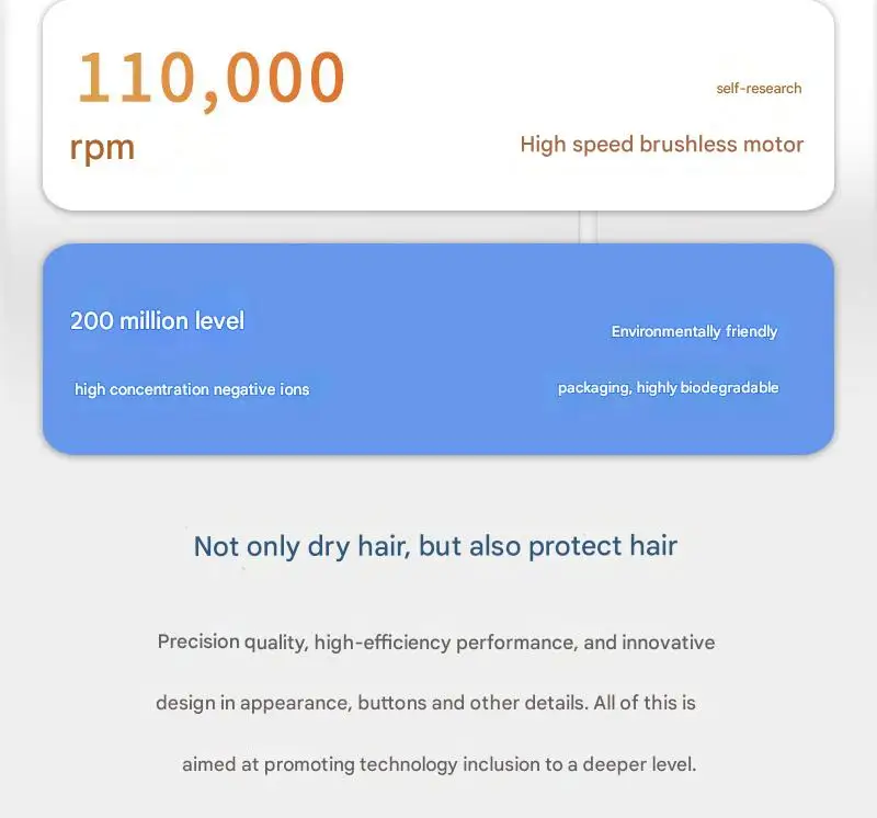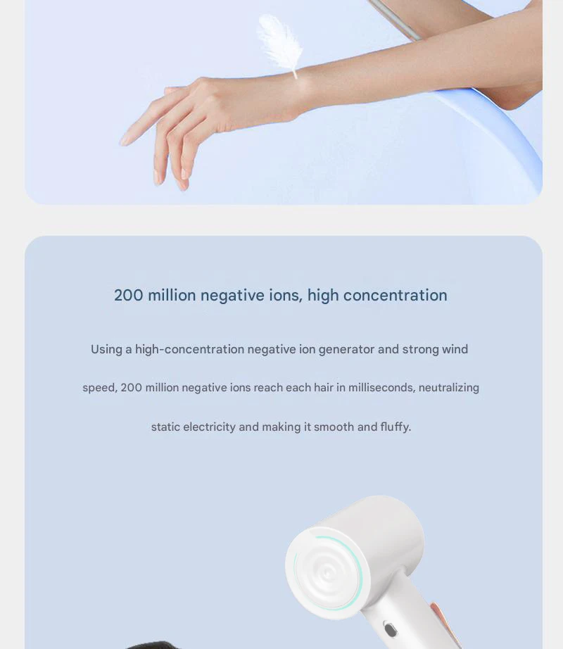 Experience gentle drying with our negative ion technology, which helps reduce frizz and enhance shine.