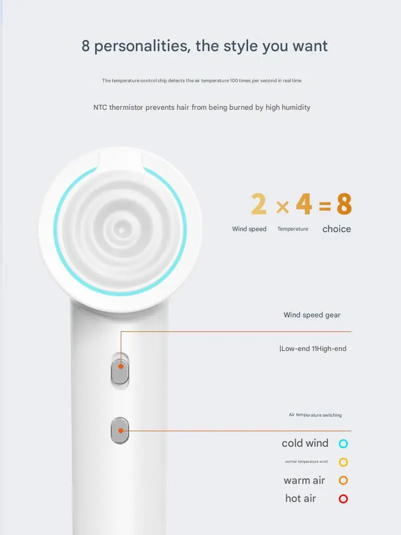 Our hair dryer delivers powerful airflow for quick drying, saving you time and effort.