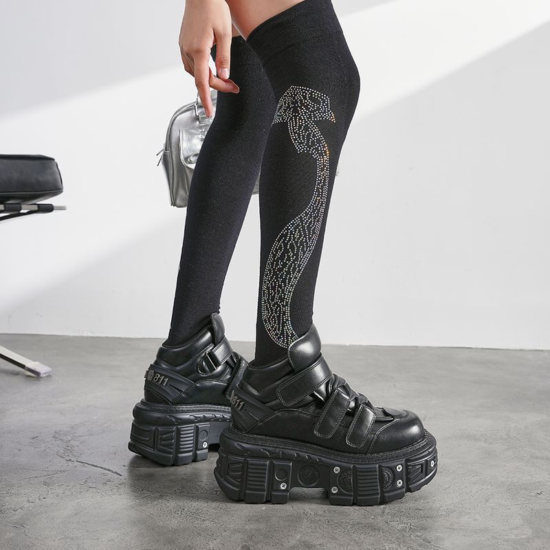 2025 New Punk Style Women Shoes Lace-up Heel Height 6CM Platform Shoes Woman Metal Decor Woman Sneakers Gothic Ankle Rock Boots