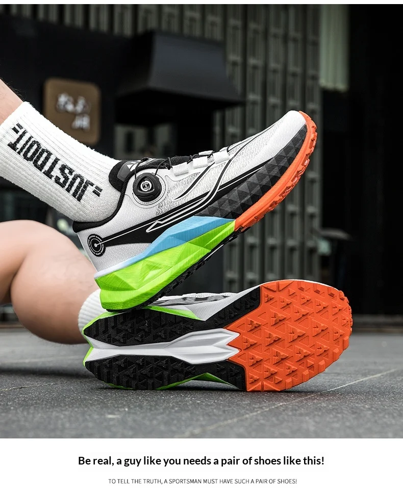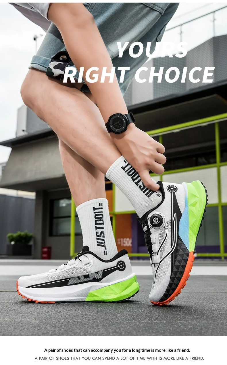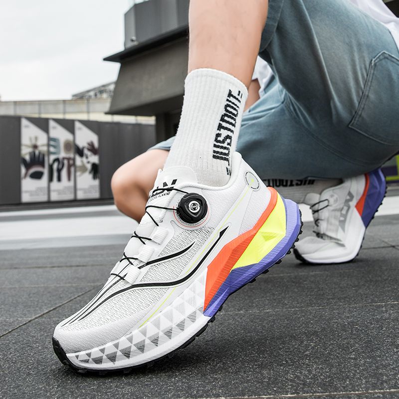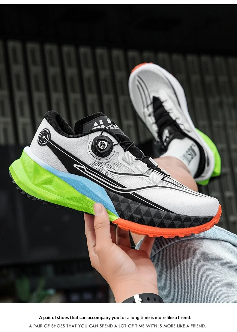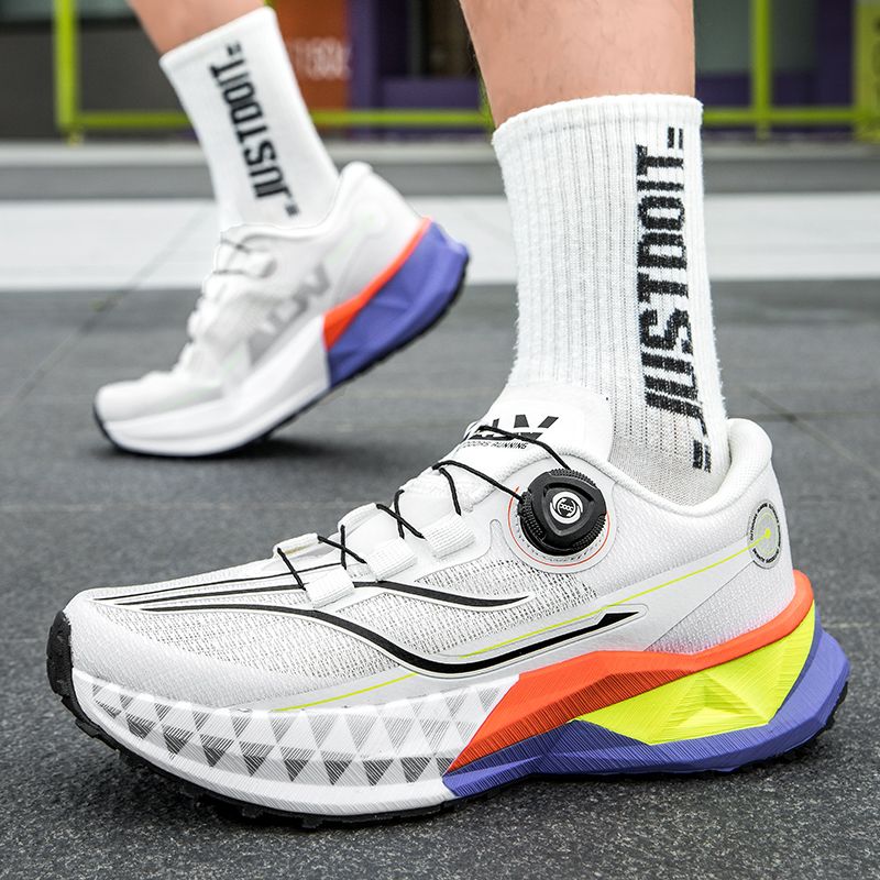 Outdoor sports shoelaces rotating buckle carbon plate and popcorn outsole men's running shoes