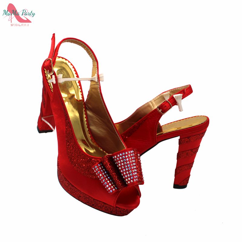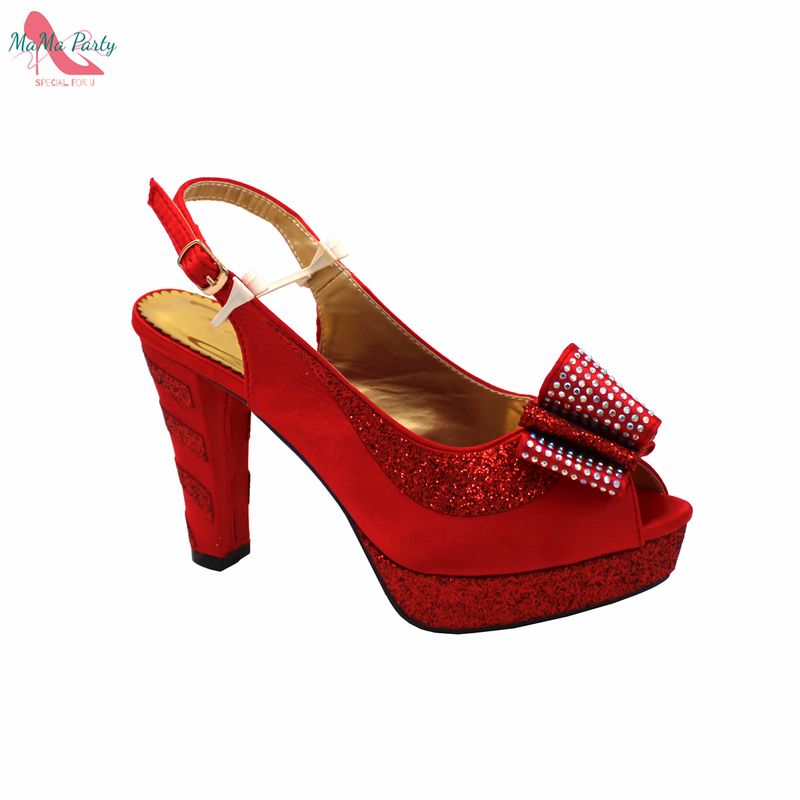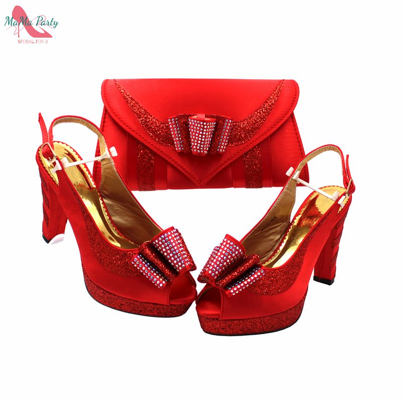 2025 Red Elegant Style Italian Women Shoes Matching Hand Bag Set Slingbacks Sandals with Platform for Party