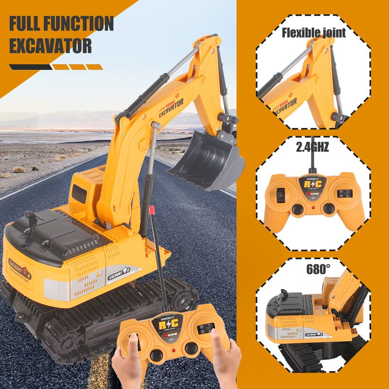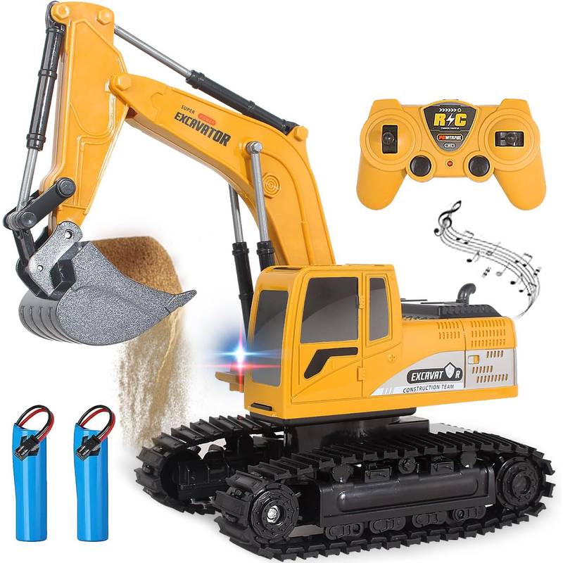 Long-Lasting Play & Sturdy And Realistic Design – 2×1200mAh battery ensures hours of uninterrupted fun, without the need for constant battery replacements. Made with a durable alloy bucket and featuring realistic flashing lights and engine sounds, our toy excavator provides a truly immersive play experience(Pro tip: manually turn the track before installing the battery.)Detailed And Realistic - This 1/24 scale model of a excavator is designed with attention to detail, making it a realistic and visually appealing toy, Equipped with robust rubber tracks, this toy can freely travel on various terrains, replicating the mobility of a real construction vehicle.Featured Multi-Channel Manipulation - The toy excavator can be manipulated flexibly for digging, handling, lifting, etc. Each channel of the excavator can be operated individually or together, giving children a truly immersive experience. With its mechanical sound effects and a flexible robotic arm, this toy brings realism to playtime.Multi-functional remote control excavator - Features a unique and realistic cab that can be rotated a full 680 degrees. With its high-quality construction, this excavator toy is built to withstand rough play and last for years. The 2. 4Ghz Multi-channel controller allows for easy and precise movement, while the playful light and sound effects add to the excitement. Get ready for some rugged adventures with this incredible remote control excavator toy.Outdoor Sand Toys for Toddles - The Little Engineers can spend hours playing with their excavator toy, driving it on the beach or in the yard, and enjoying the ability to scoop, transfer, and dump sand on their very own construction sites.Best Gifts Ideas for Kids - The great holiday surprise gift for your little ones. This fun construction toy will truly amaze your kids and keep them entertained for hours on end. Great for parent-children activity. Also funning toy playing with friends to increase kid’s cooperation ability.