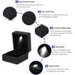 1.ILLUMINATED RING: box is equipped with a small LED light that emits a white light when box is opened, which makes jewelry more dazzling and shows a bright ring at any time