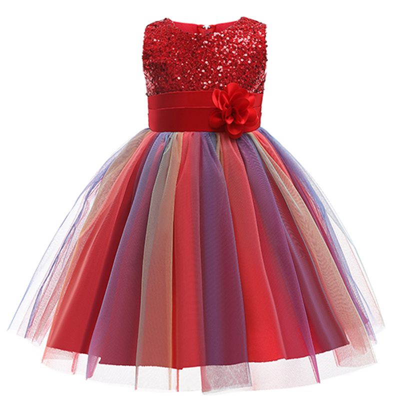 2025 Sequins Girls Dress Summer Flower Fashion Rainbow Mesh Little Princess Dresses For Piano Performance Costume Kids Clothes