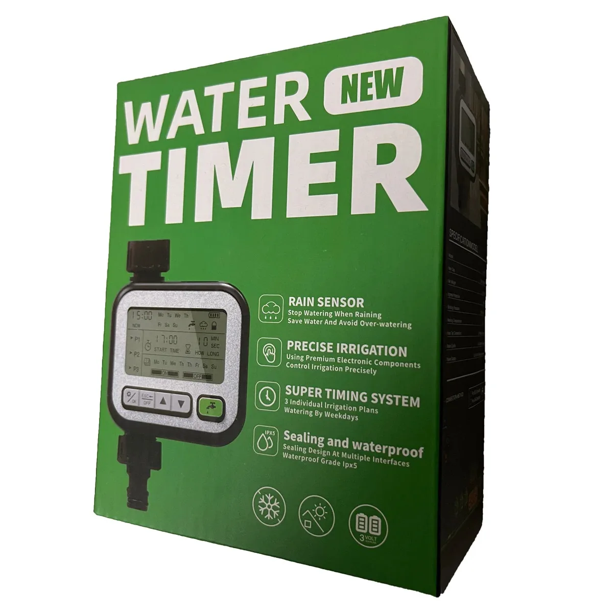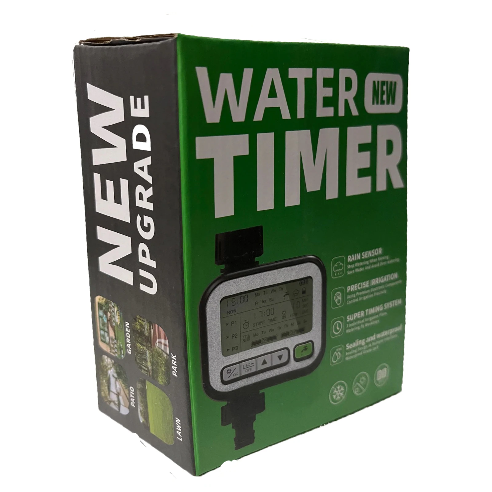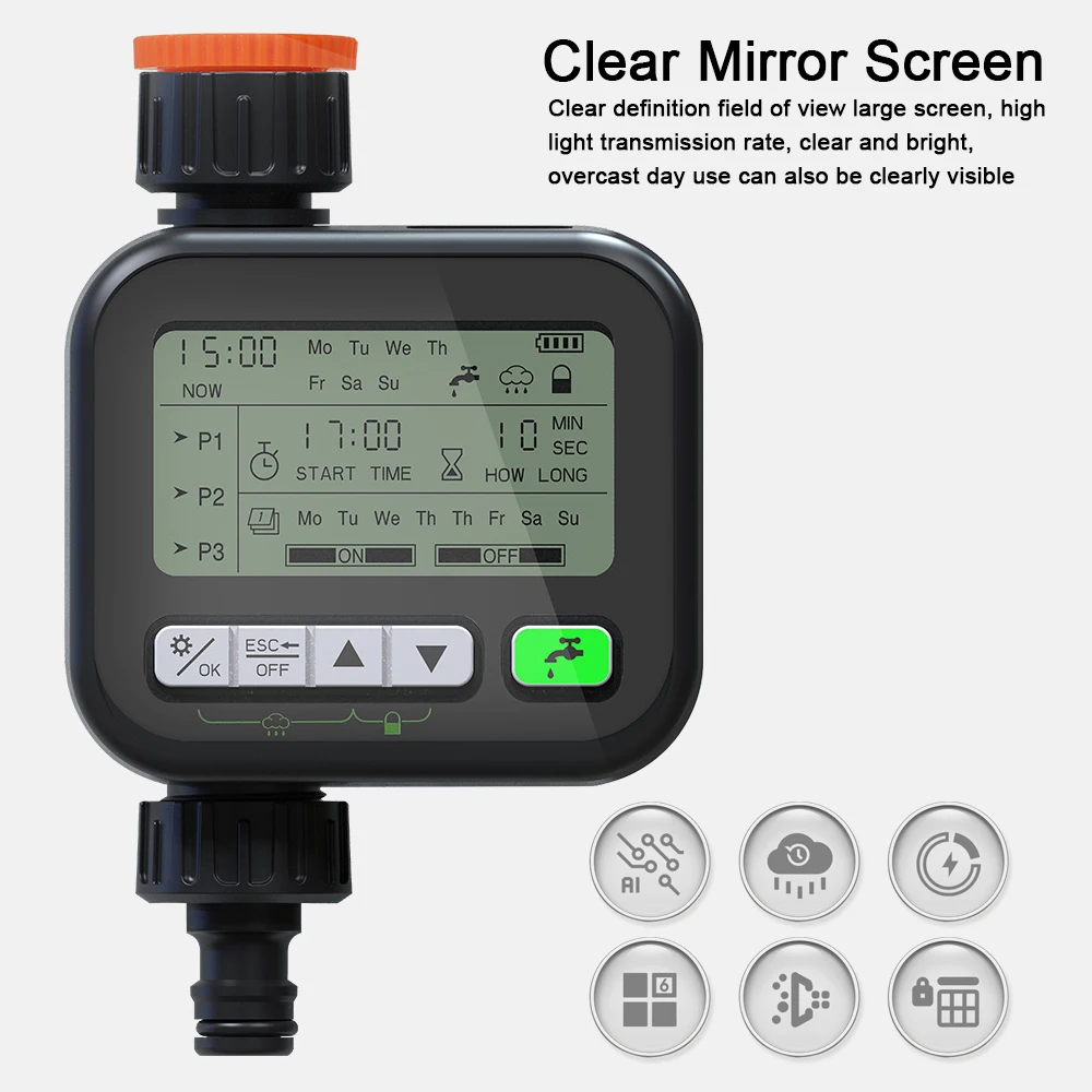 This watering timer adopts rain sensing control technology, support normal irrigation on sunny days, and automatic shutdown on rainy days, and when the water on upper of the sensing chip evaporates naturally or wipes dry, it will automatically resume the timing setting program. 3 sets of independent timing programs can be set. One program can only choose one mode. Support set the starts time, watering time and endurance time, interval time,etc. Suitable for garden irrigation, lawn irrigation, vegetable field irrigation, pot irrigation and etc.