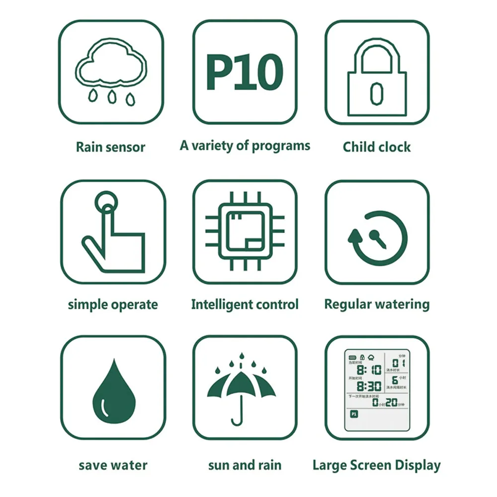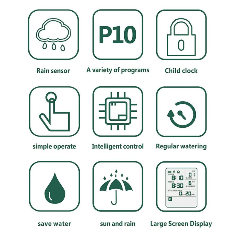 Rain Sensing Control: Support normal irrigation on sunny days, and automatic shutdown on rainy days, and when the water on upper of the sensing chip evaporates naturally or wipes dry, it will automatically resume the timing setting program.