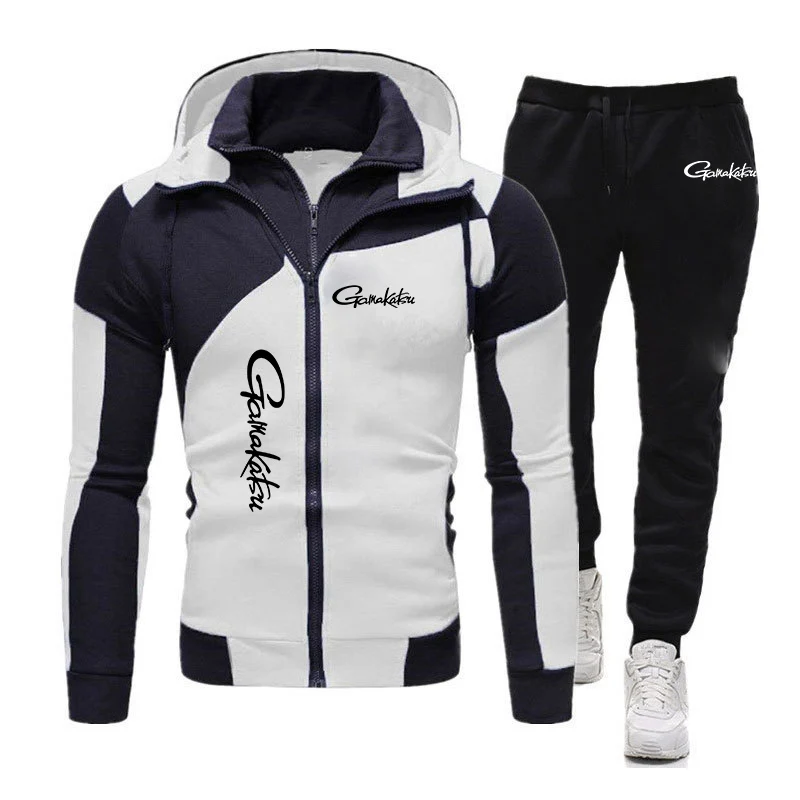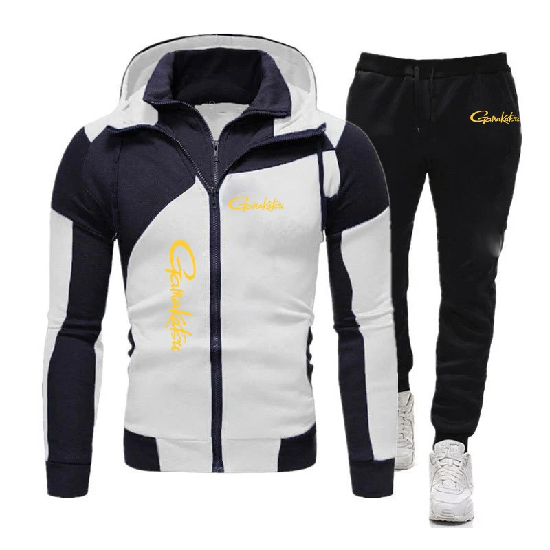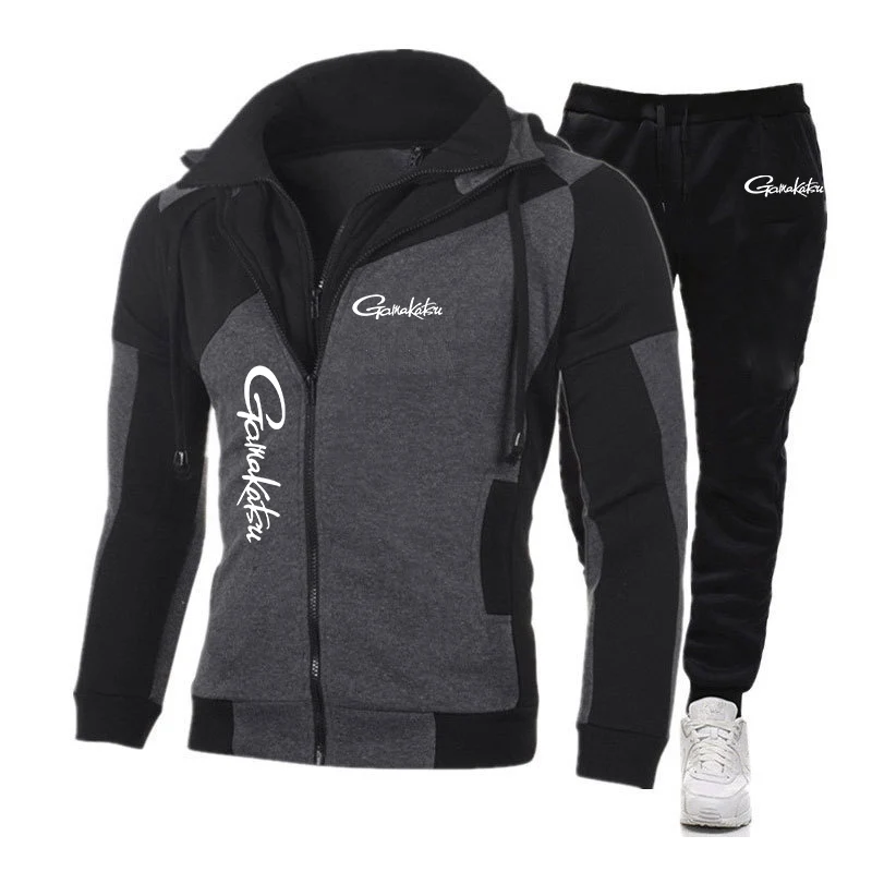 2025 Spring Autumn Gamakatsu Print Sports Cotton Comfortable Sets Men's Trendy Zip Splicing Hoodies+Solid Color Sweatpants Suits