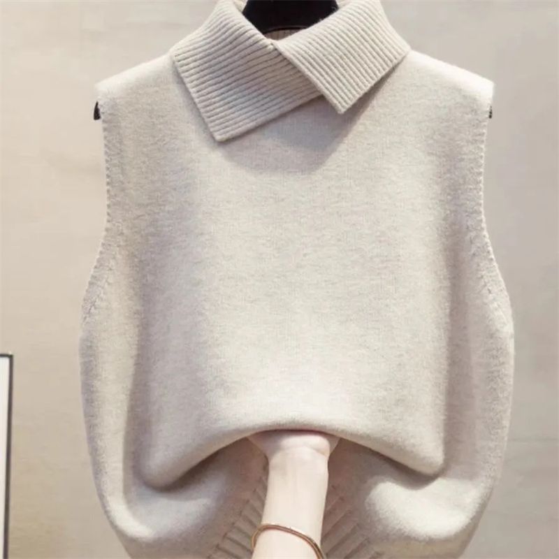 2025 Spring Autumn High-neck Sleeveless Ladies Sweater Vest Jacket High-end Solid Color Women's Knitting Pullover Waistcoat Top