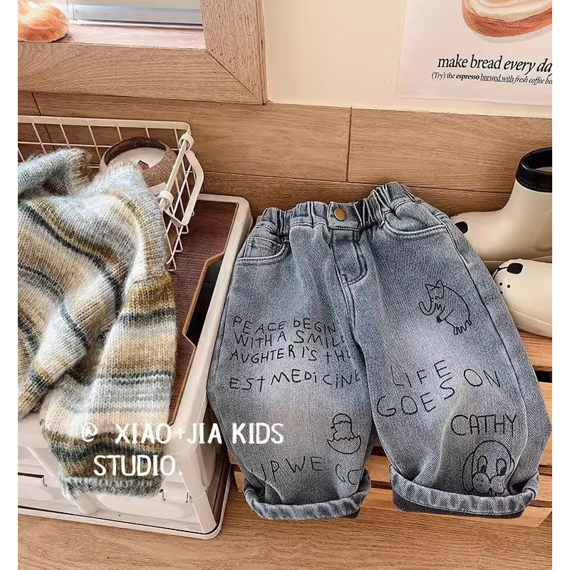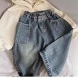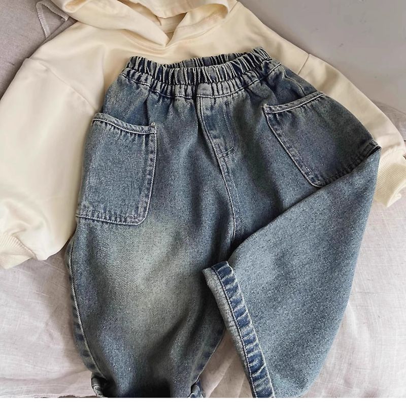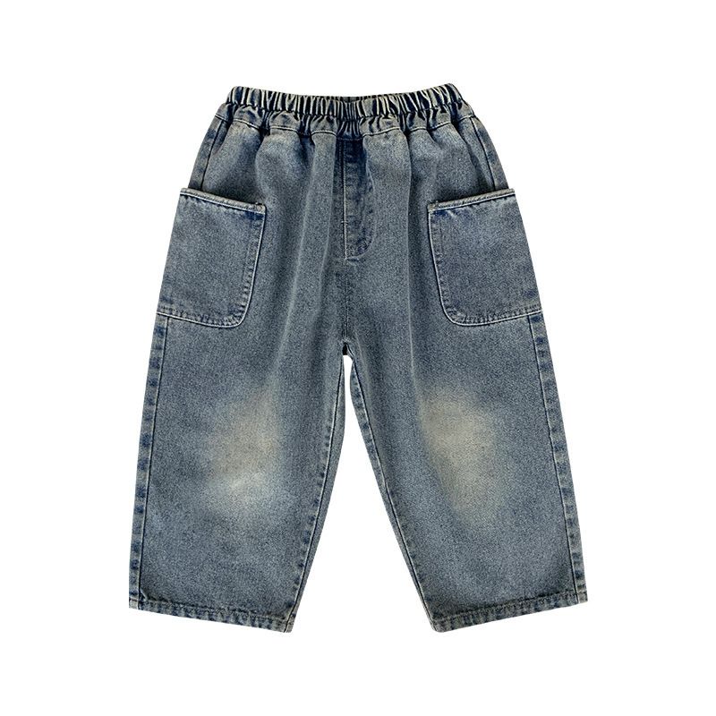 2025 Spring Autumn Kid Boys Denim Pants Side Pocket Polished White Children Boys Pants Elastic Waist Casual Baby Boys Trousers