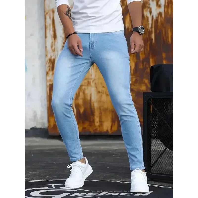 2025 Spring New Mens Slim Fit Classic Skinny Jeans Casual Street Style Casual Mens Skinny Jeans Male Slim Fit Pencil Denim Blue