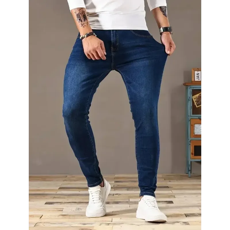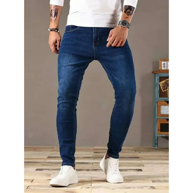 2025 Spring New Mens Slim Fit Classic Skinny Jeans Casual Street Style Casual Mens Skinny Jeans Male Slim Fit Pencil Denim Blue