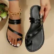 2025 Summer Flat Heel Sandals Women's Casual Simple Fashion Beach Slippers Women's PU Leather Belt Slip-On Gladiator Sandals