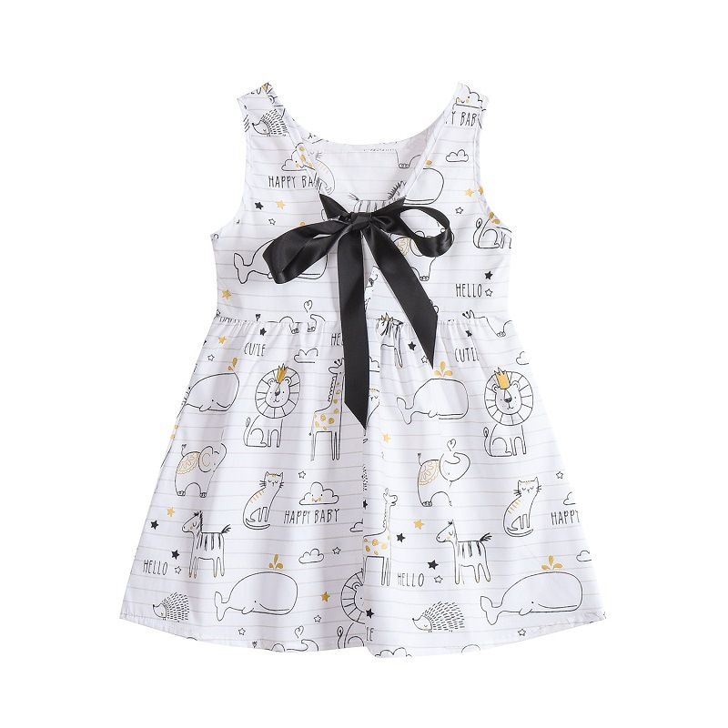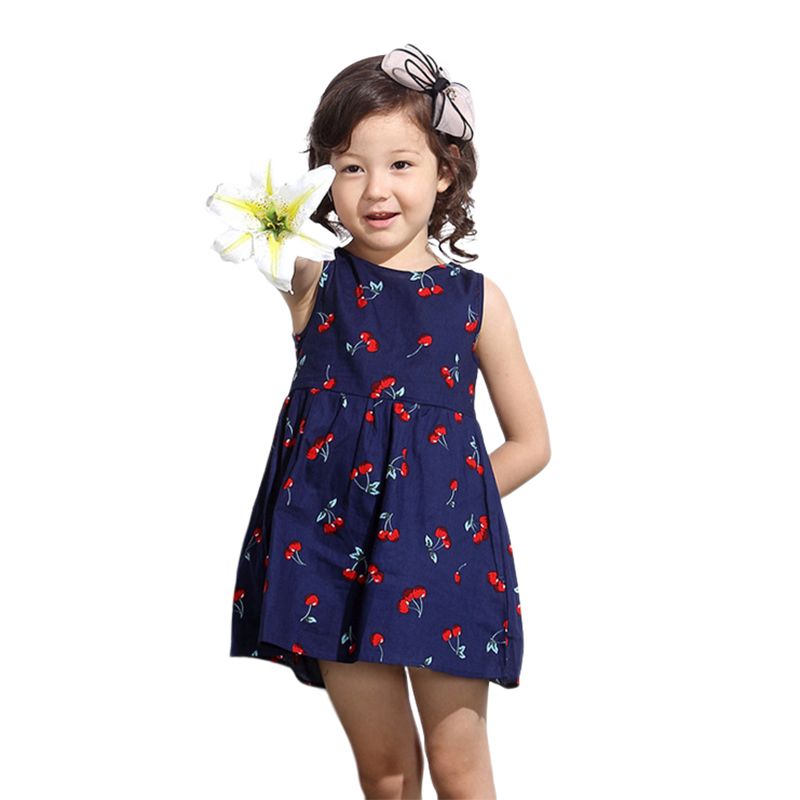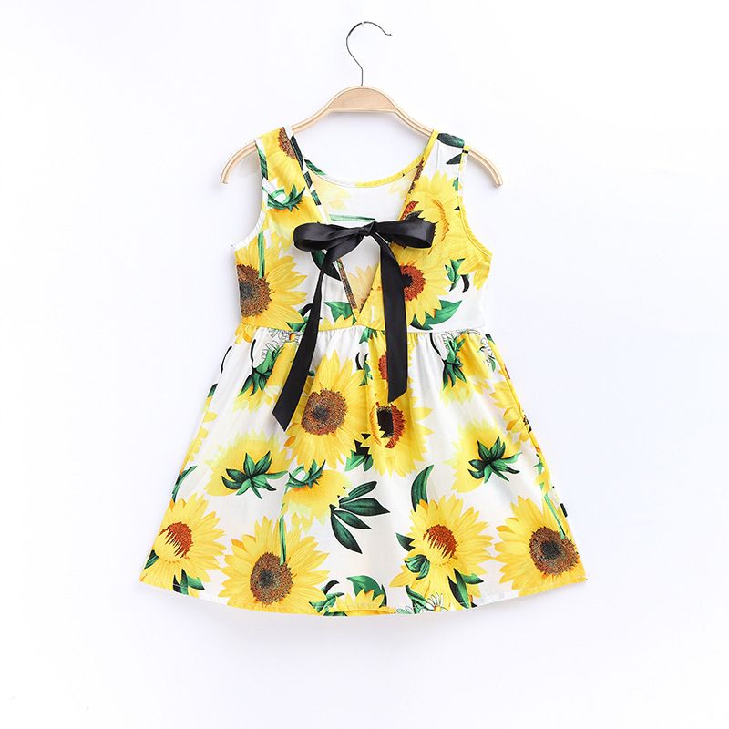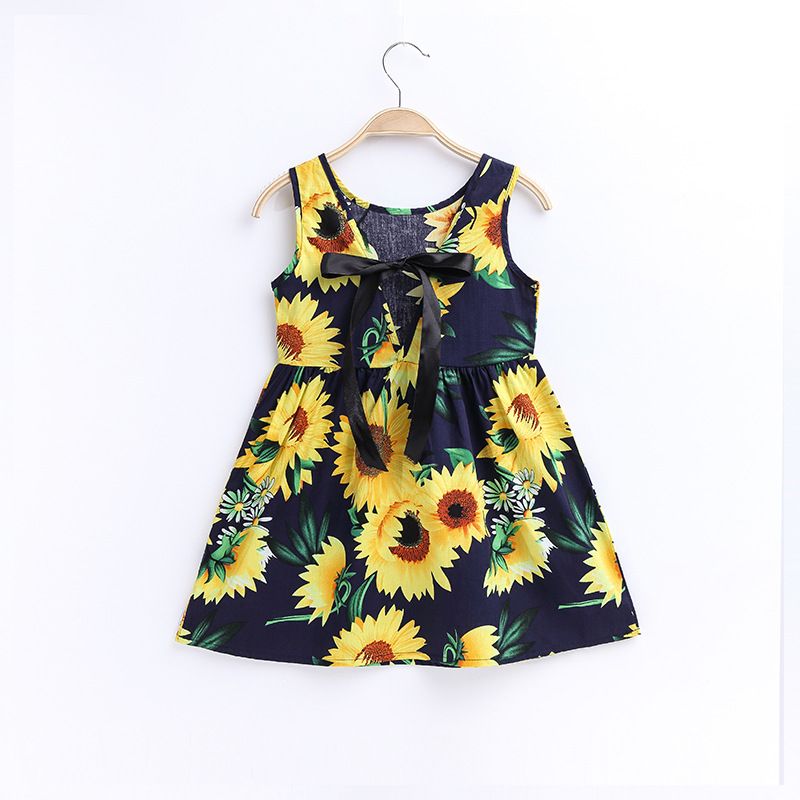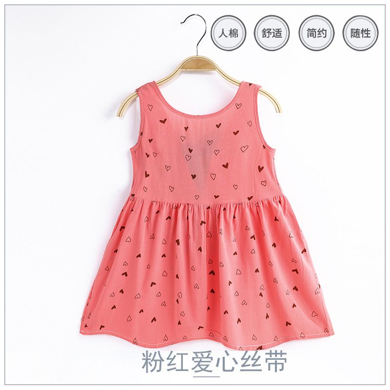 Theme: Girls Summer Print Binding Rope Dress Kids Cotton Sleeveless Sundress