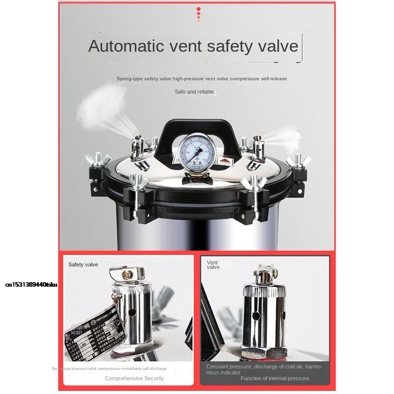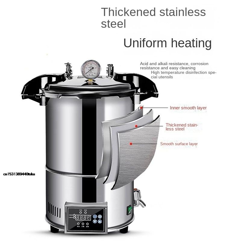 18L Portable High Pressure Sterilizer Stainless steel Steam Sterilization Pot Automatic Sterilization Autoclave Pot