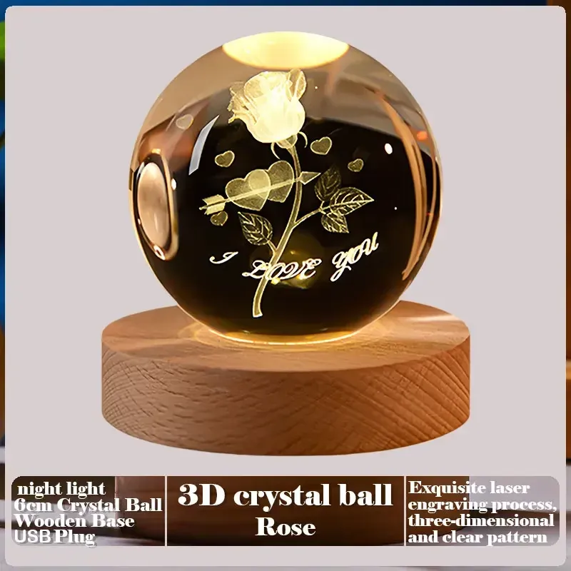 2025 Valentines Day Gift 3D Rose Crystal Ball Laser Carving Home ornament Crafts Desktop Decor Birthday Mother Day Gift