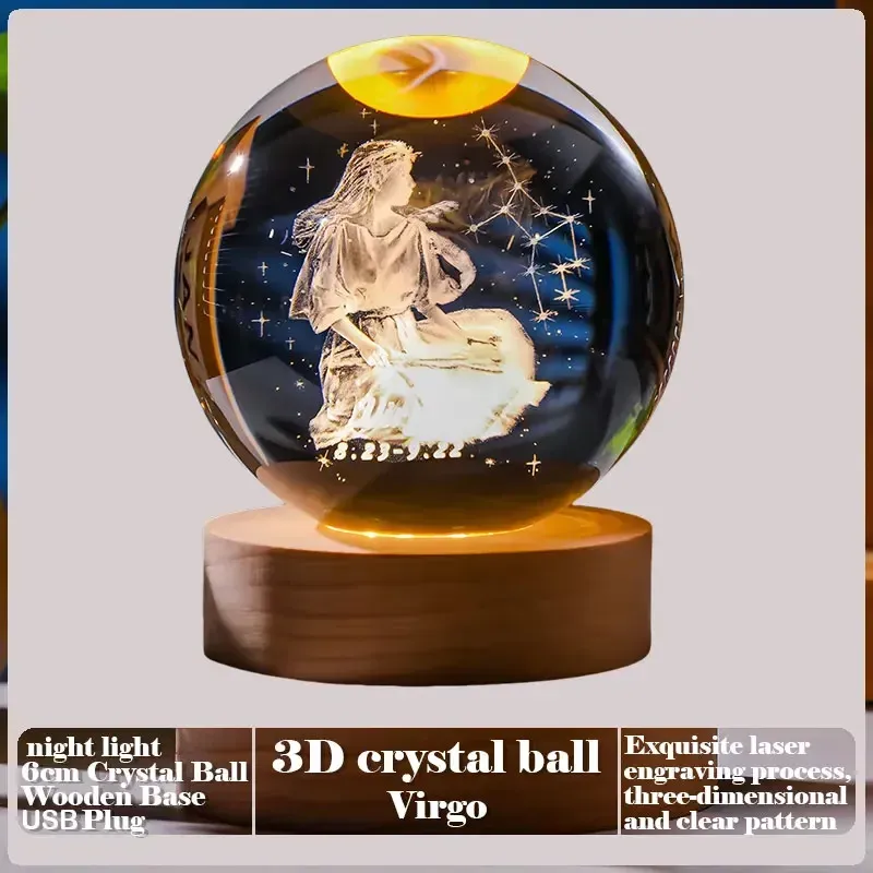 1.Exquisite 3D Laser Engraved Crystal Ball: The 3D crystal ball showcases 12 Constellation various themes like the solar system, ensuring that the crystal maintains its brilliance even after long-term use. Perfectly crafted, these 3D crystal ball decorations create a romantic ambiance for both children and adults. The LED- base adds a warm and bright glow, making it a stunning centerpiece in any room.