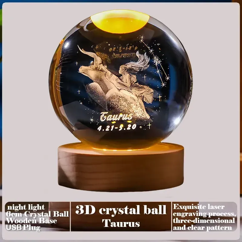 1.Exquisite 3D Laser Engraved Crystal Ball: The 3D crystal ball showcases 12 Constellation various themes like the solar system, ensuring that the crystal maintains its brilliance even after long-term use. Perfectly crafted, these 3D crystal ball decorations create a romantic ambiance for both children and adults. The LED- base adds a warm and bright glow, making it a stunning centerpiece in any room.