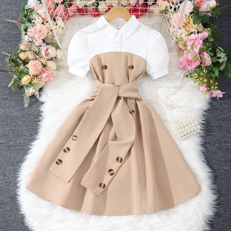 2025 Vintage Elegant Kids Girl Dress Summer Short Sleeves School Graduation Birthday Party Children Dresses 7 8 9 10 11 12 Yrs