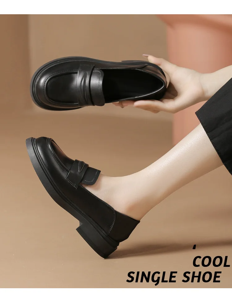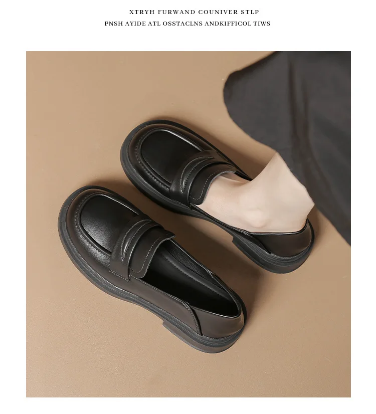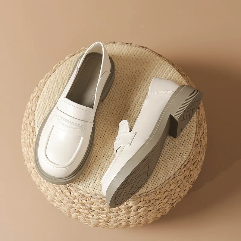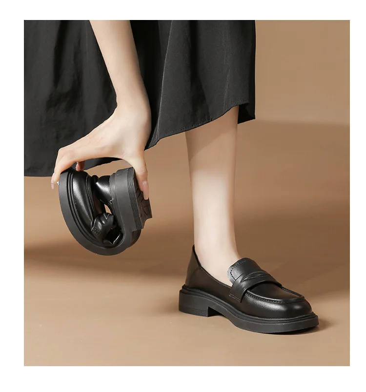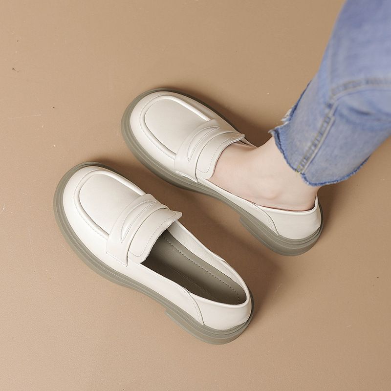 2025 Women Cow Leather Loafers Low Heels Platform Flats Shoes Ladies Spring Oxfords Thicken Soled Boat Shoes Barefoot Moccasines