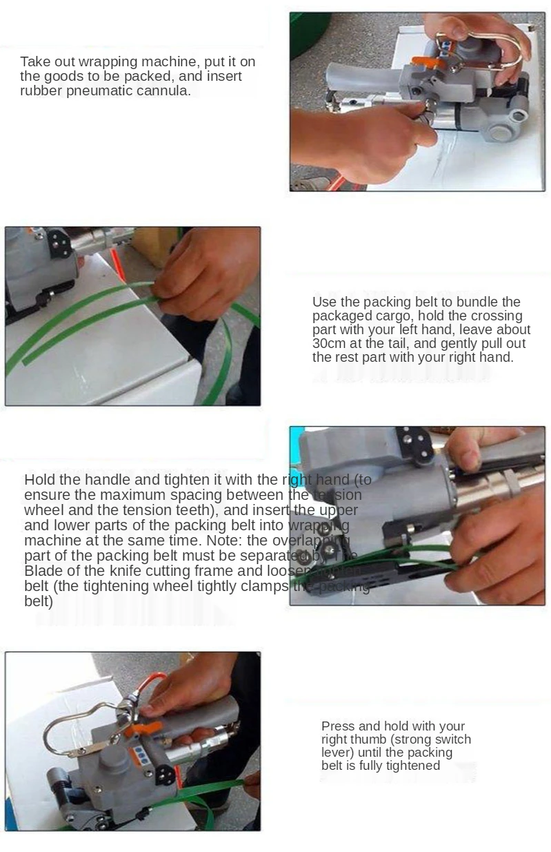 2. Combined type. Pneumatic tightening, snapping, and belt cutting are integrated.
