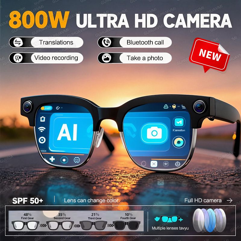 2026 800W Pixel Camera Smart Glasses HD Photo Video Translation Photochromic Glasses Call Music Multifunction Smart Sunglasses