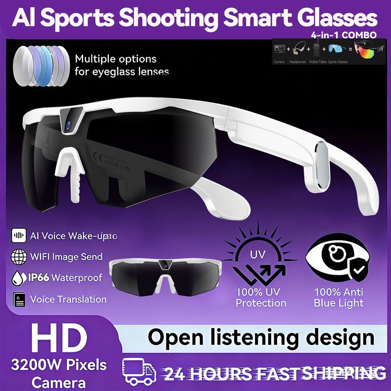 2026 AI Skiing Smart Glasses 800W HD Anti-shake Camera Action Capture Goggles Men 3D Surroud Sound AI Chat Call Sport Sunglasses