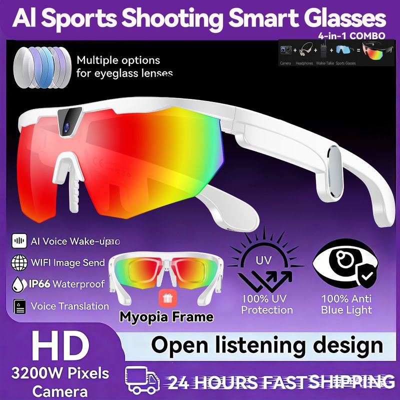 2026 AI Skiing Smart Glasses 800W HD Anti-shake Camera Action Capture Goggles Men 3D Surroud Sound AI Chat Call Sport Sunglasses