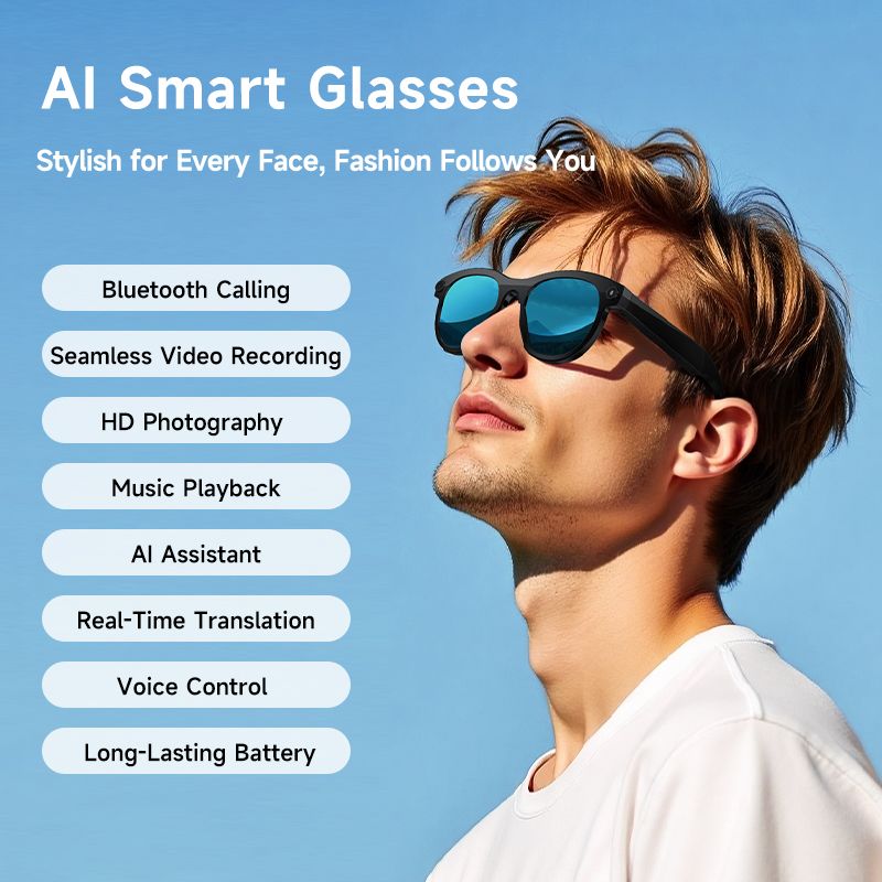 2026 AI Smart Glasses New Interaction With Camera Photo Video Record Translation Music Smart Sunglasses Bluetooth Call Headphone
